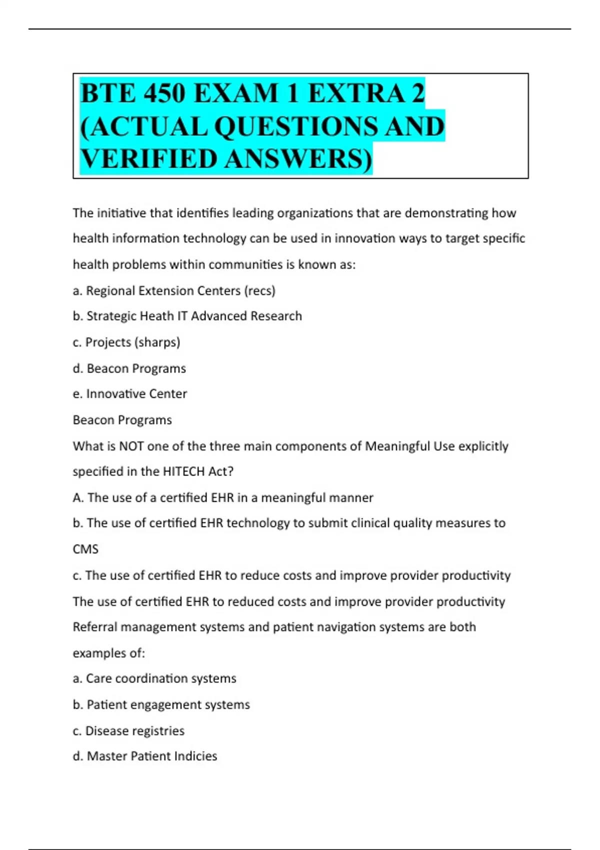 BTE 450 EXAM 1 EXTRA 2 (ACTUAL QUESTIONS AND VERIFIED ANSWERS)