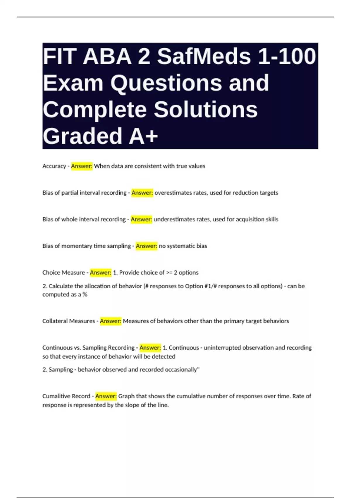 Continuous vs. Sampling Recording - Answer: 1. Continuous - uninterrupted observation and recording