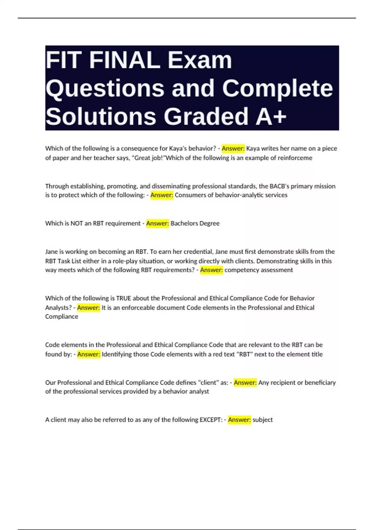 Analysts? - Answer: It is an enforceable document Code elements in the Professional and Ethical