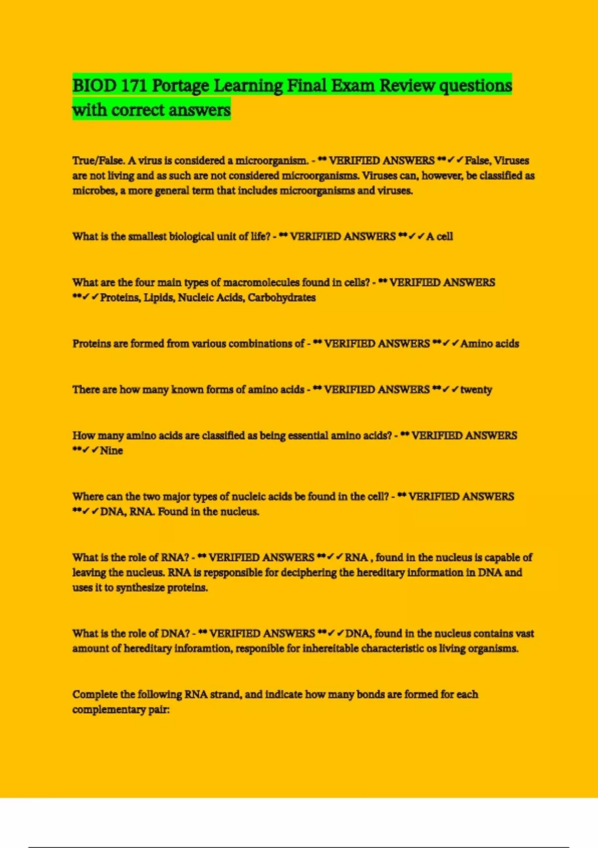 What is the role of RNA? - ** VERIFIED ANSWERS **✔✔RNA , found in the nucleus is capable of