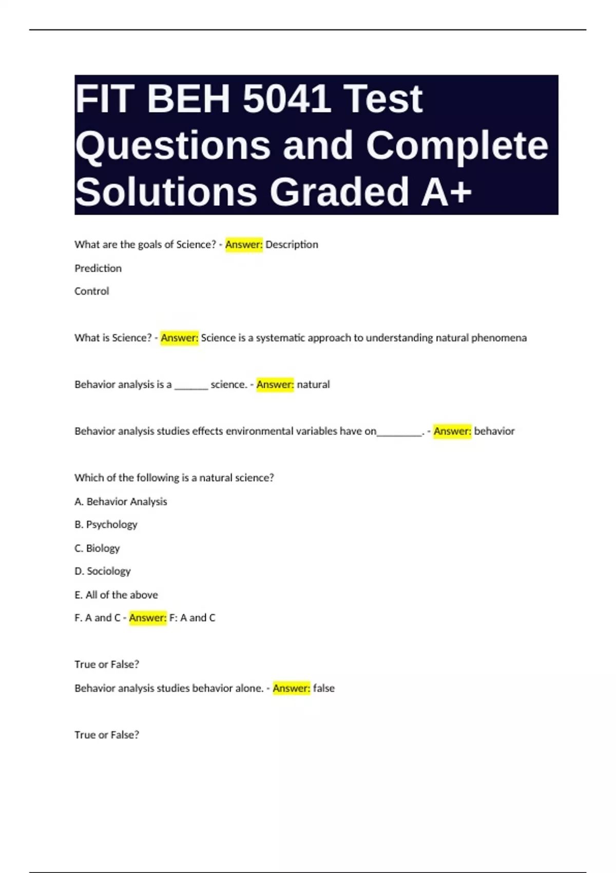 Behavior analysis studies behavior alone. - Answer: false