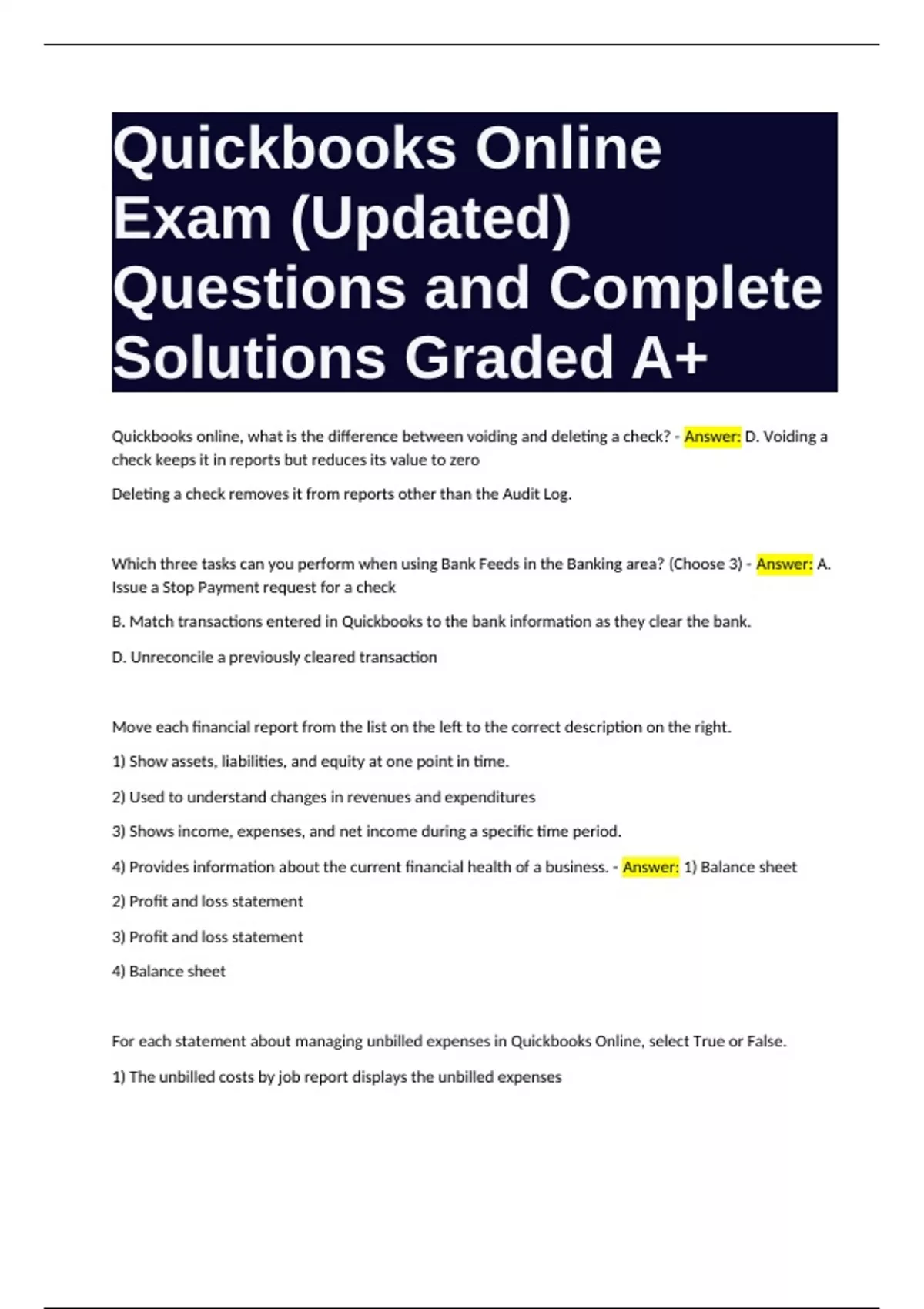Quickbooks Online Exam (Updated) Questions and Complete Solutions Graded A+