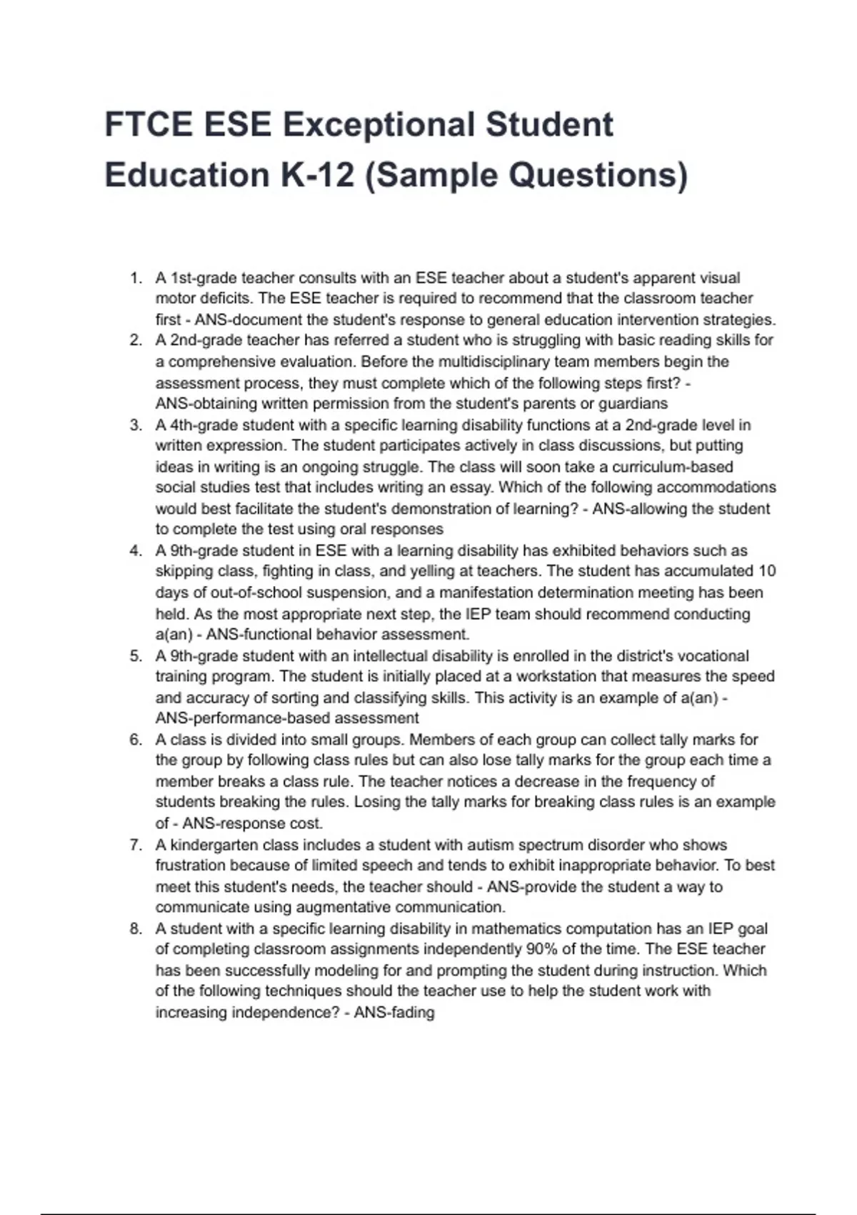 Education K-12 (Sample Questions)