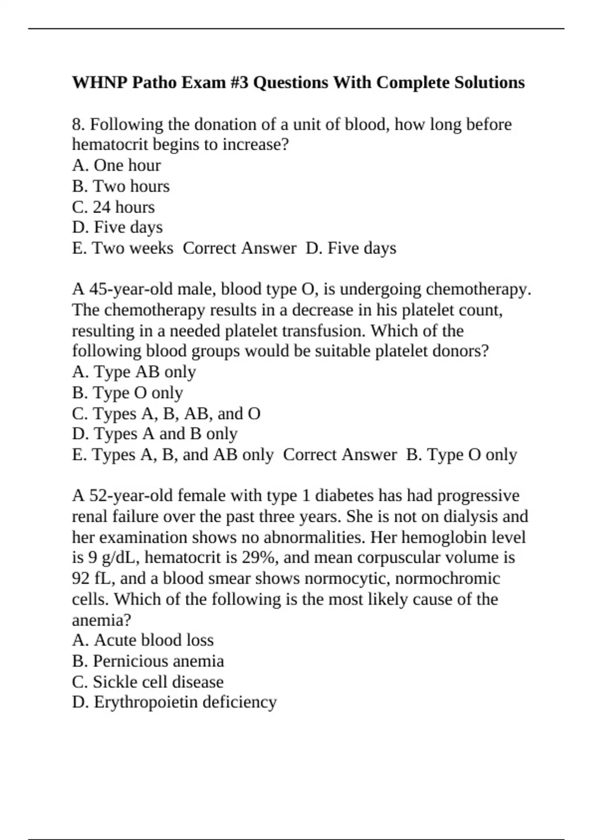 arms and legs. Her laboratory studies show: Hemoglobin 4.6