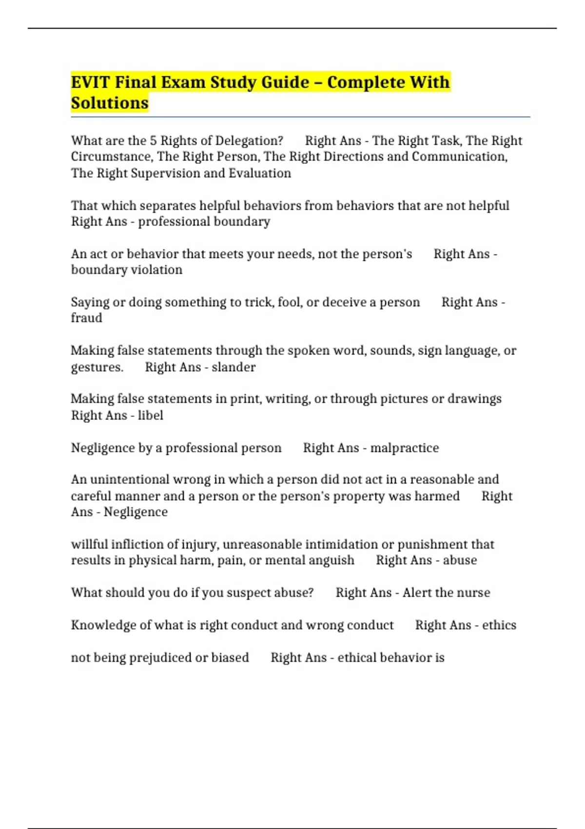 EVIT Final Exam Study Guide – Complete With Solutions