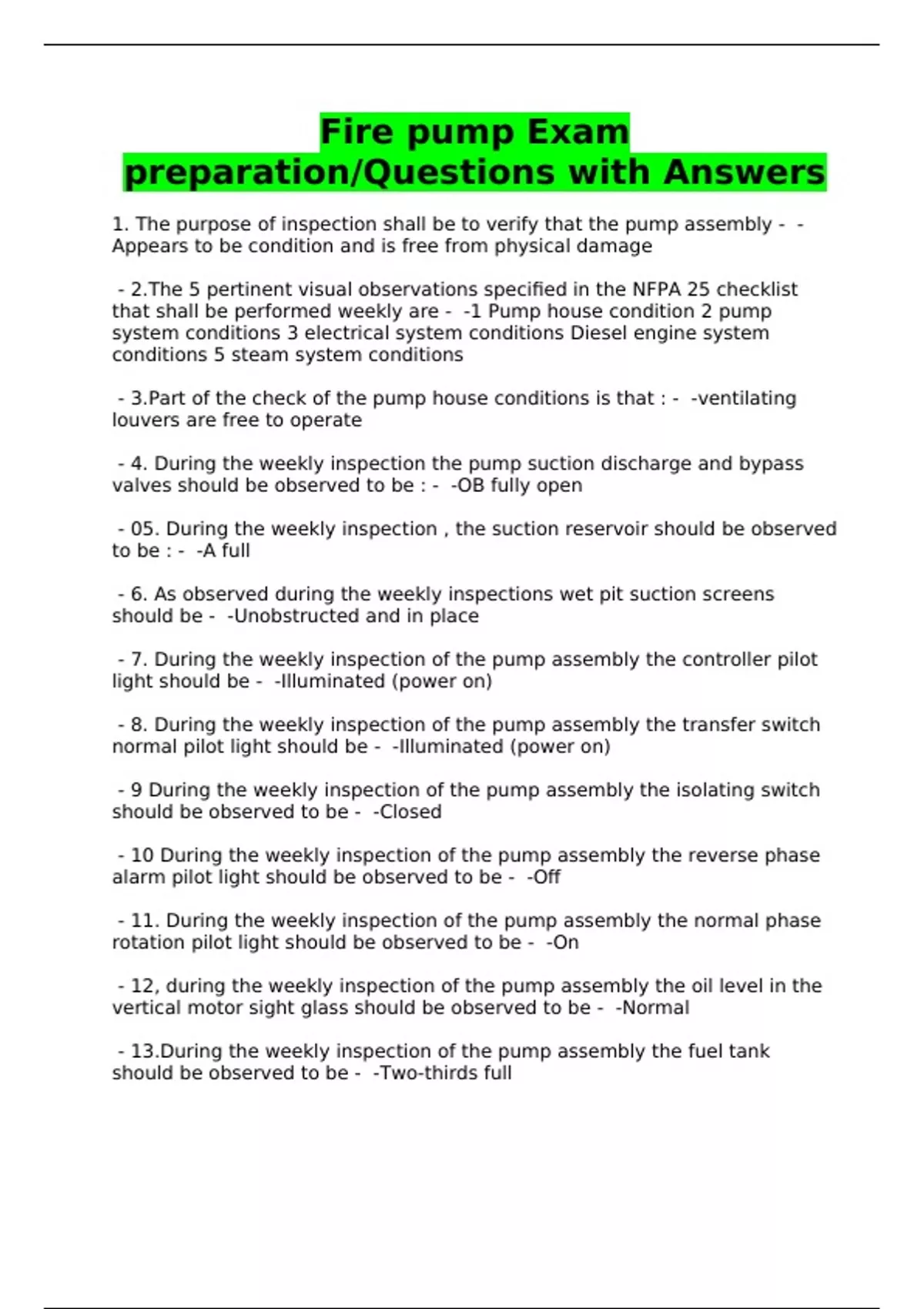 Fire pump Exam preparation/Questions with Answers
