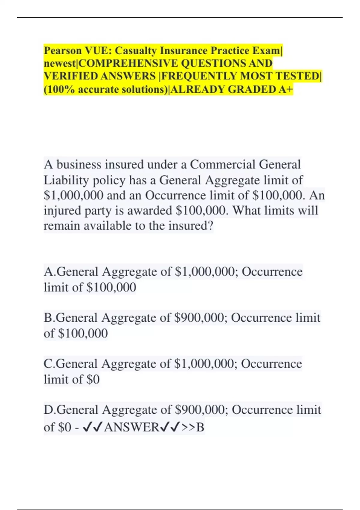 D.General Aggregate of $900,000; Occurrence limit