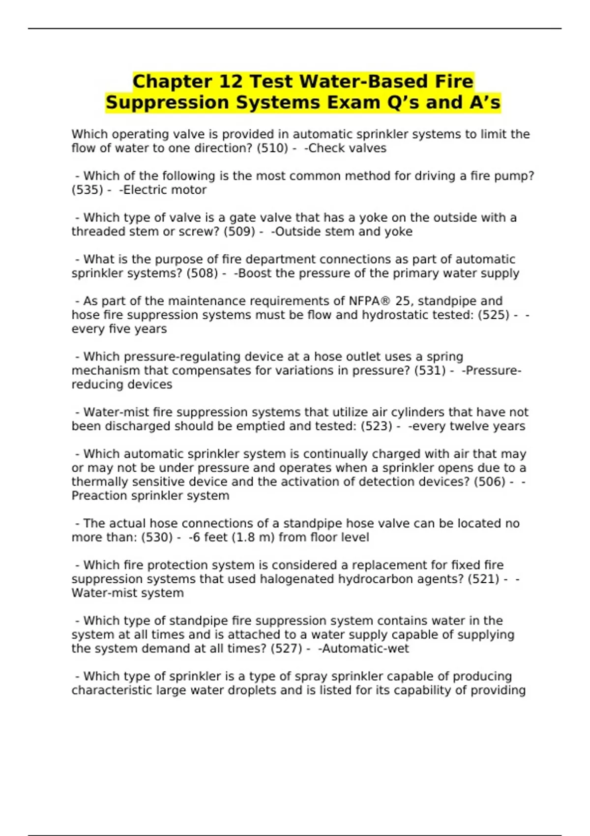 Chapter 12 Test Water-Based Fire Suppression Systems Exam Q’s and A’s