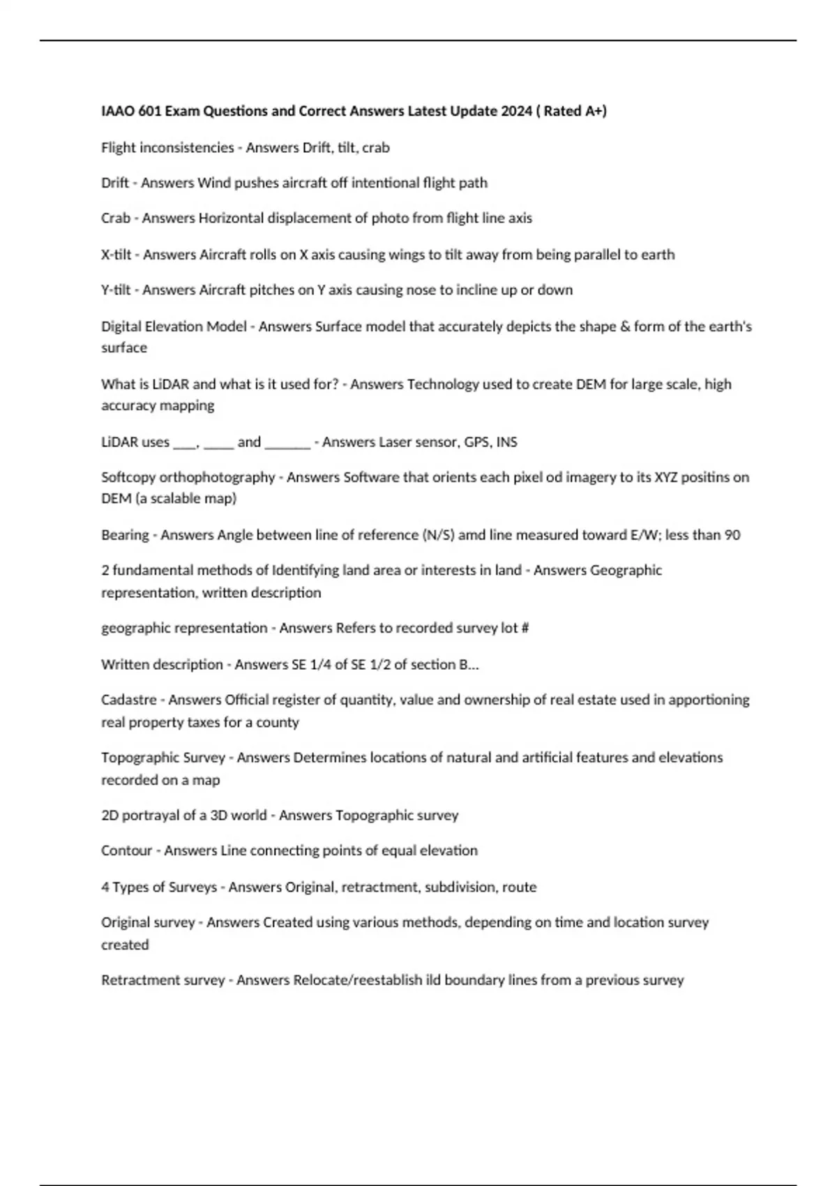 Flight inconsistencies - Answers Drift, tilt, crab