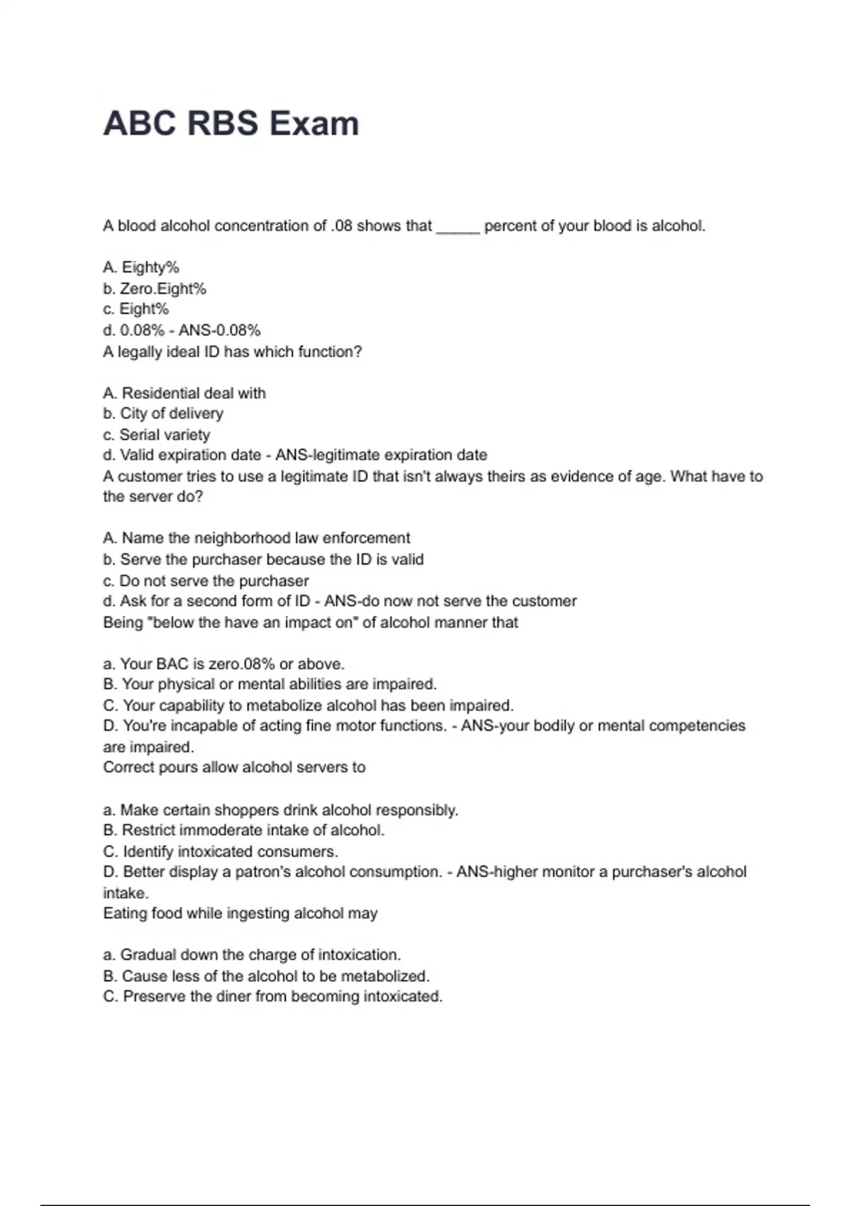 D. Ensures patrons do not end up intoxicated. - ANS-establishes the uniformity of accountable