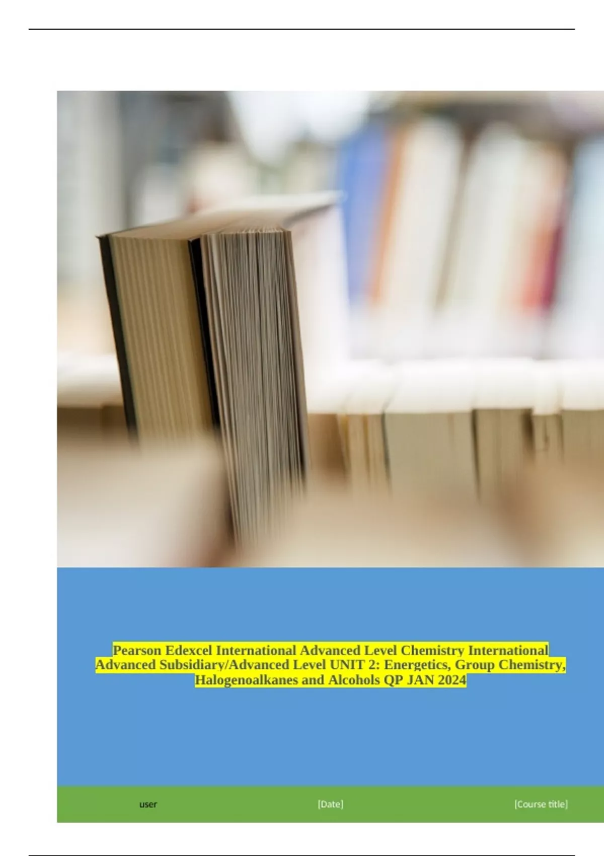 Level UNIT 2: Energetics, Group Chemistry, Halogenoalkanes and Alcohols QP JAN 2024