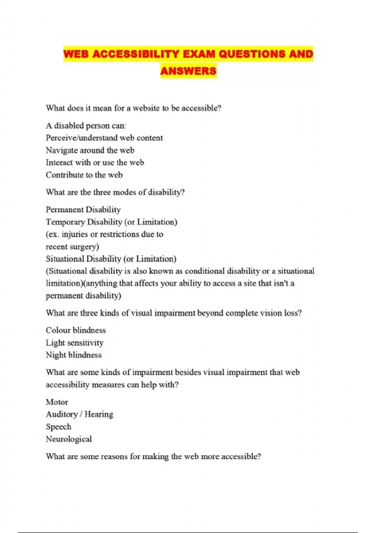 WEB ACCESSIBILITY EXAM QUESTIONS AND ANSWERS...