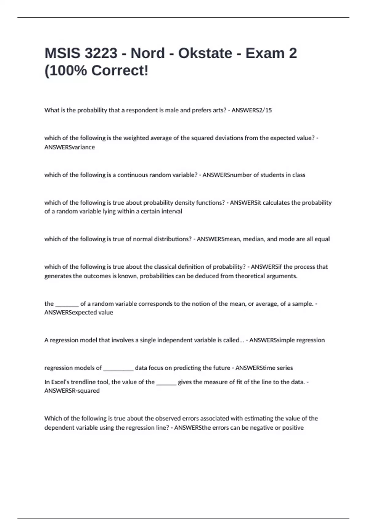which of the following is true about probability density functions? - ANSWERSit calculates the probability