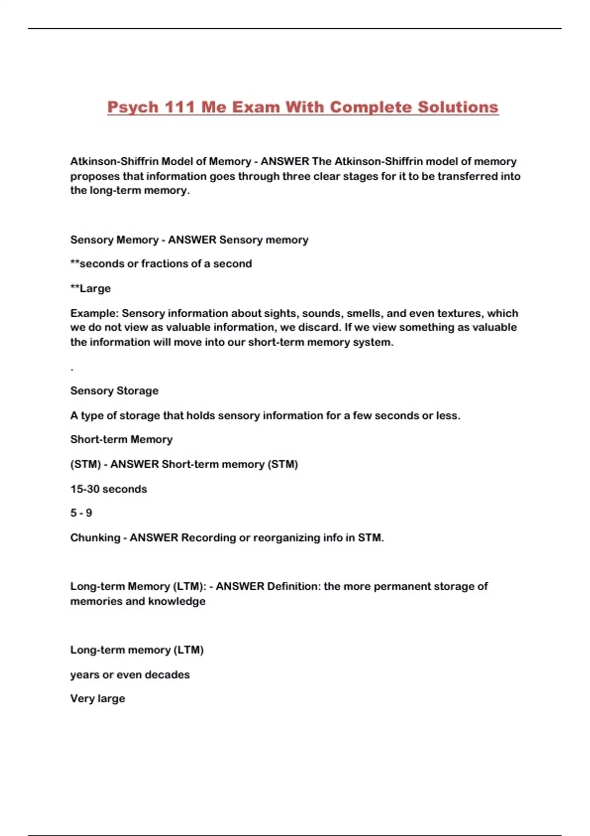 Psych 111 Me Exam With Complete Solutions