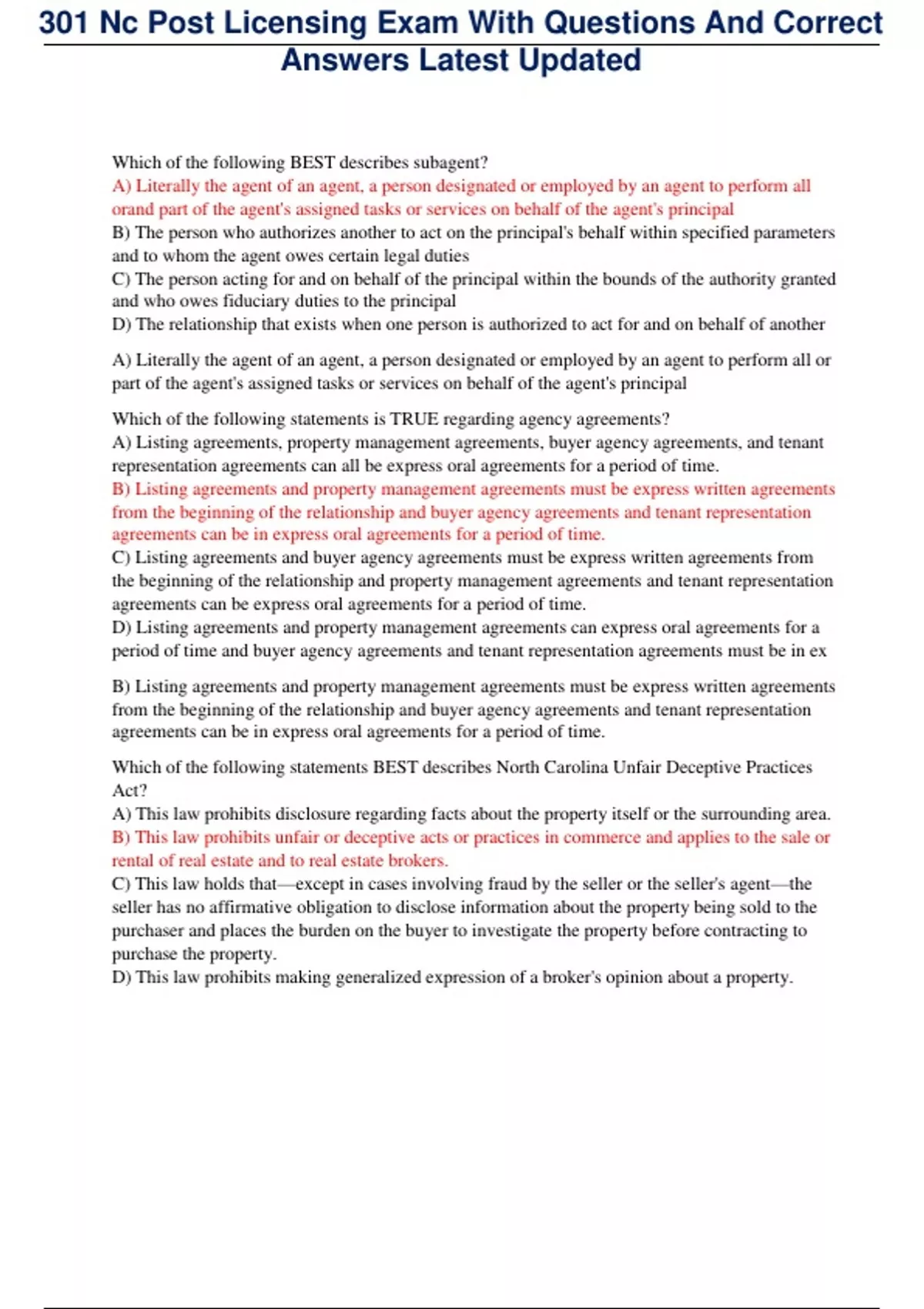 , 301 Nc Post Licensing Exam With Questions And Correct