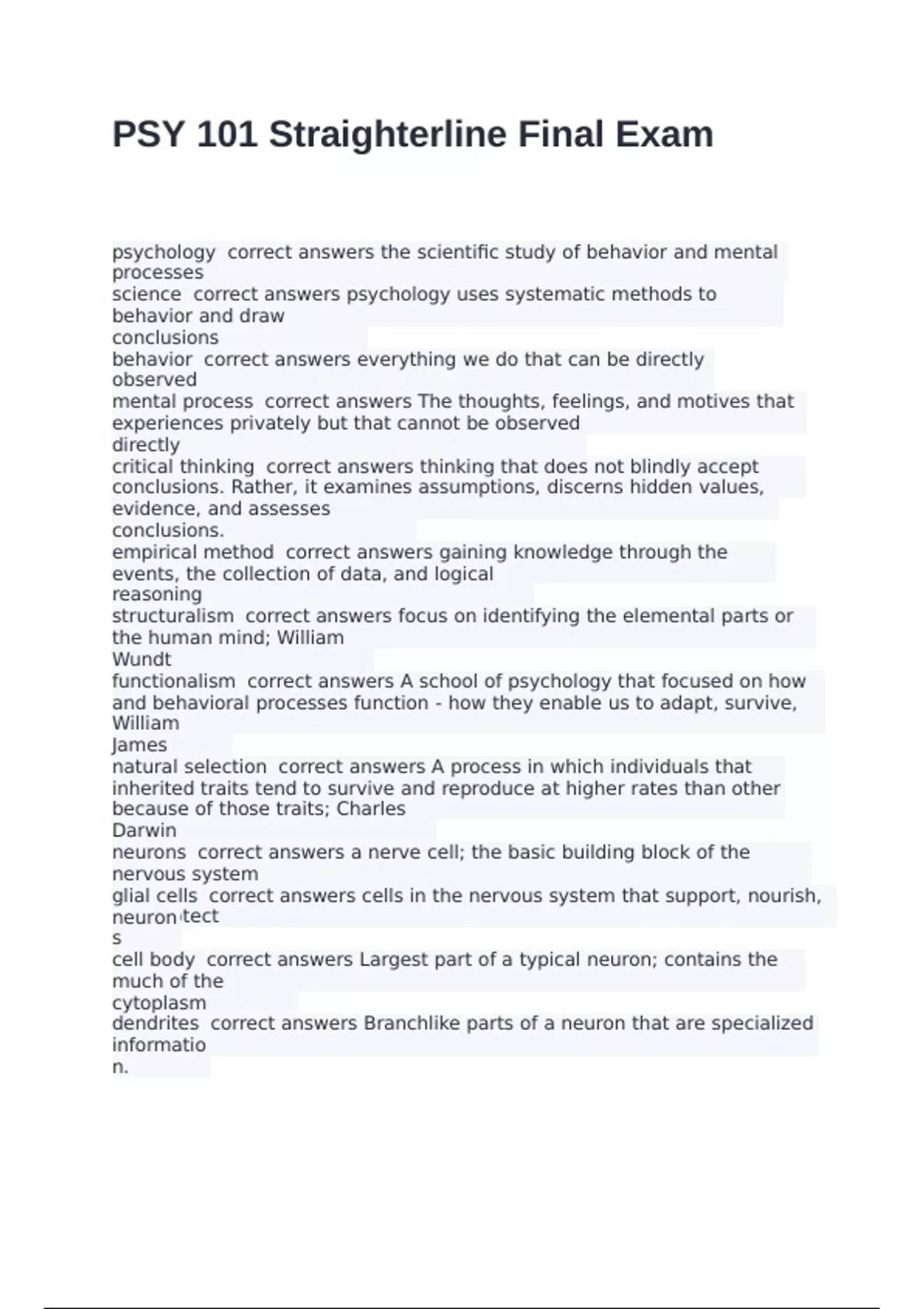 psychology correct answers the scientific study of behavior and mental