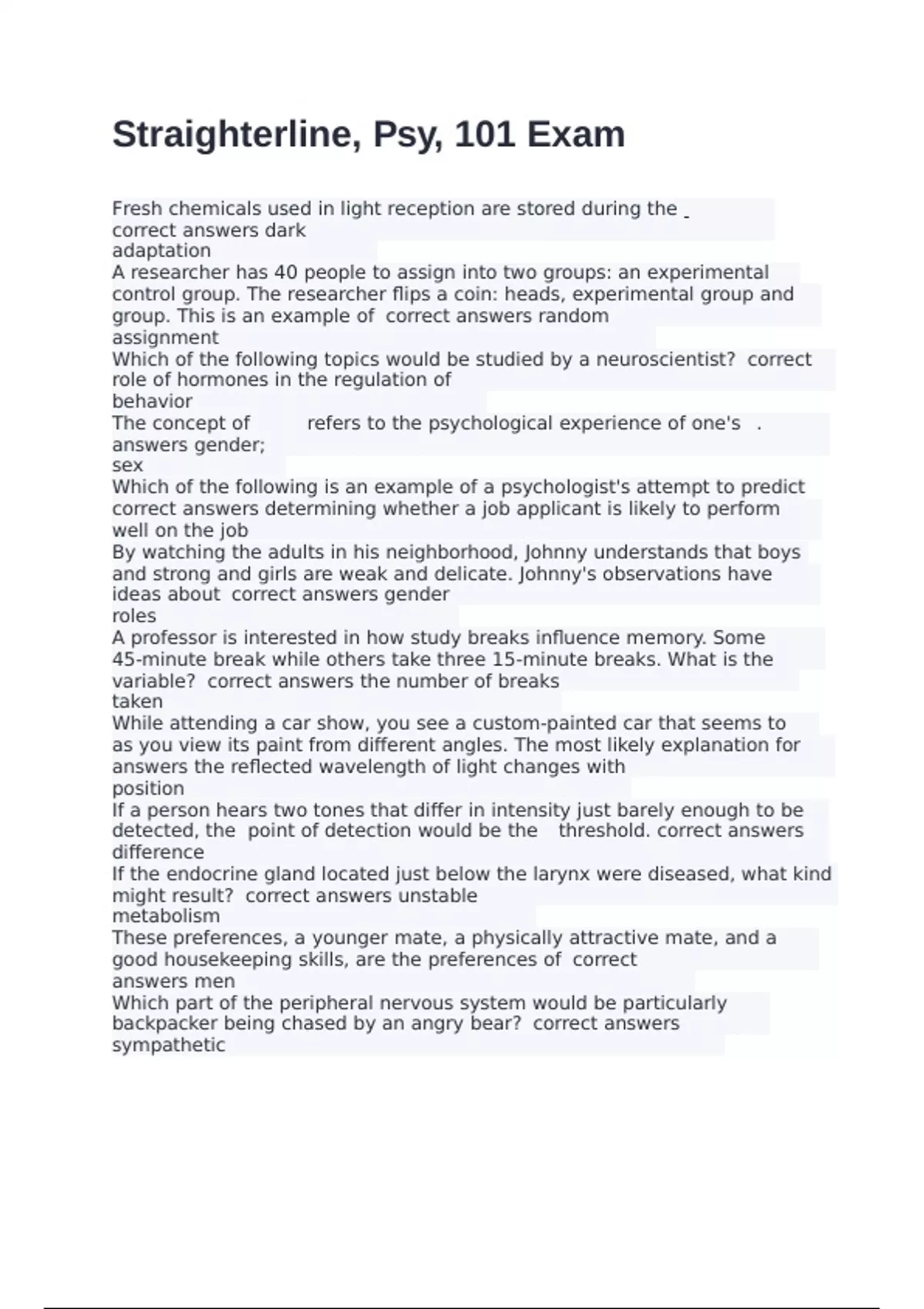 Straighterline, Psy, 101 Exam with correct answers 2024