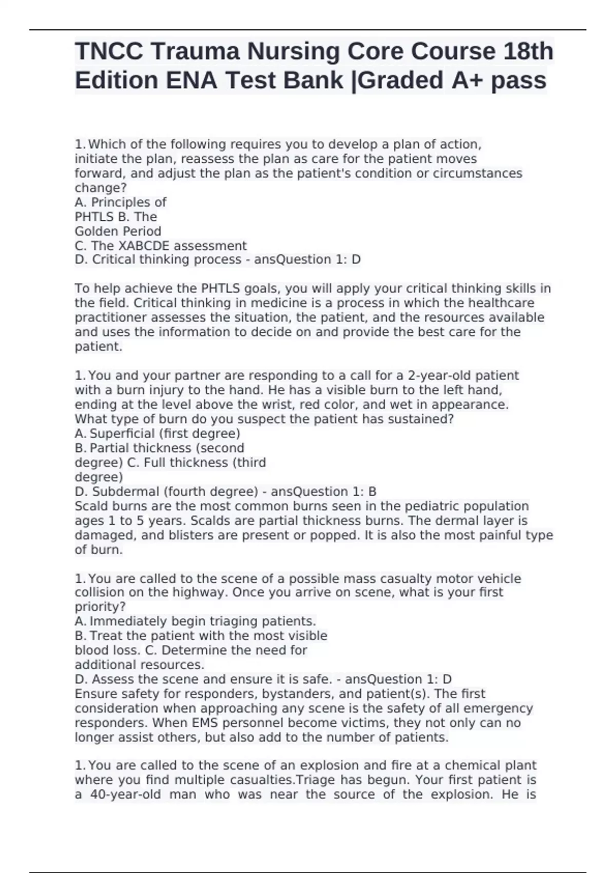 D. Assess the scene and ensure it is safe. - ansQuestion 1: D