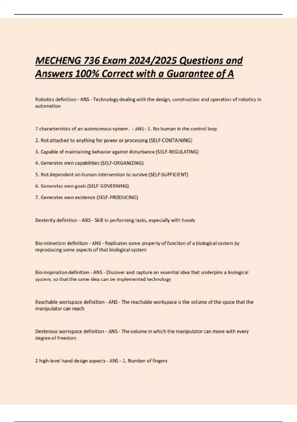 MECHENG 736 Exam Bundled docs 2024/2025 Questions and Answers 100% Verified with a Guarantee of A