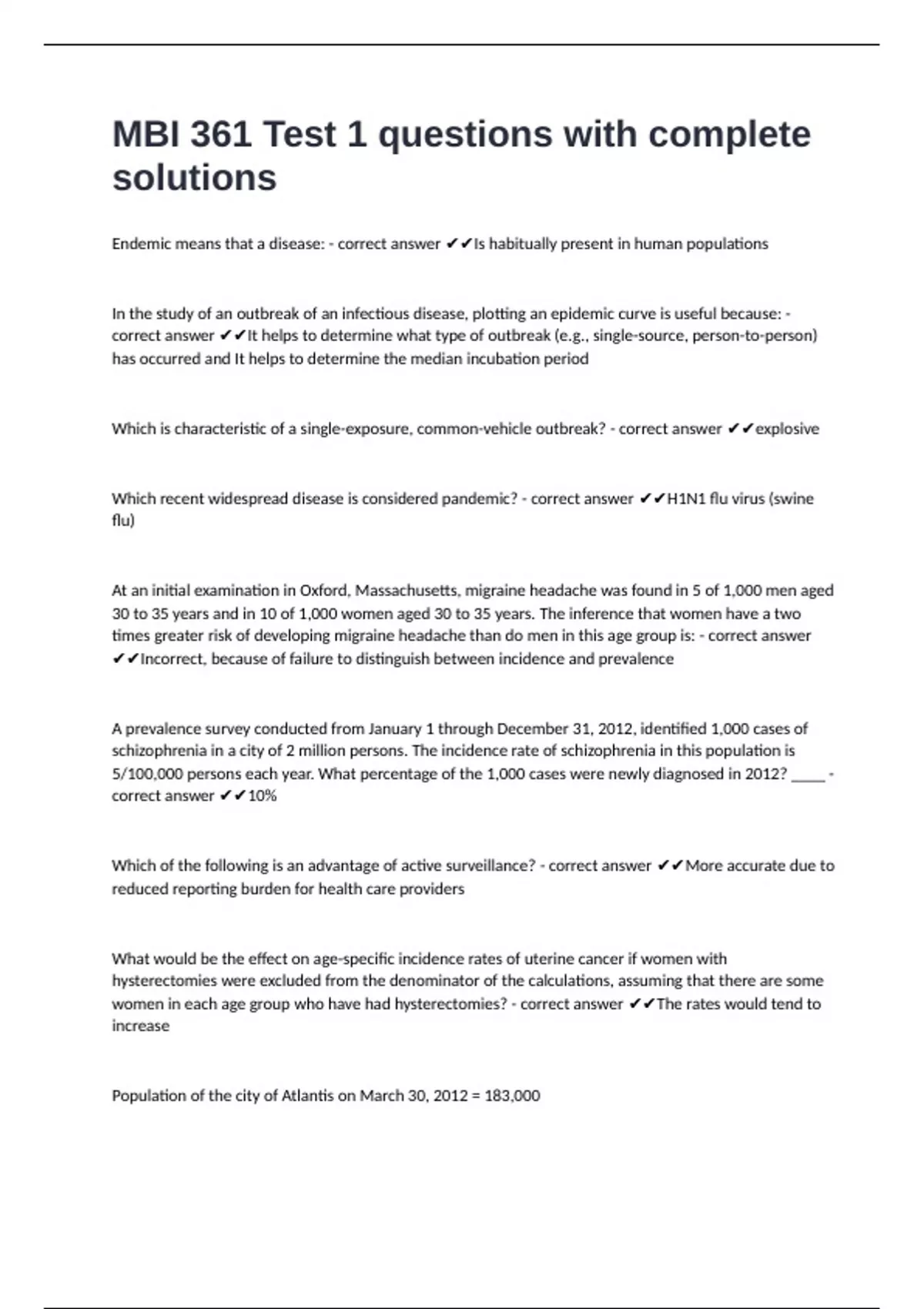 What Is Epidemiology? - correct answer ✔✔the study of how disease is distributed in populations and