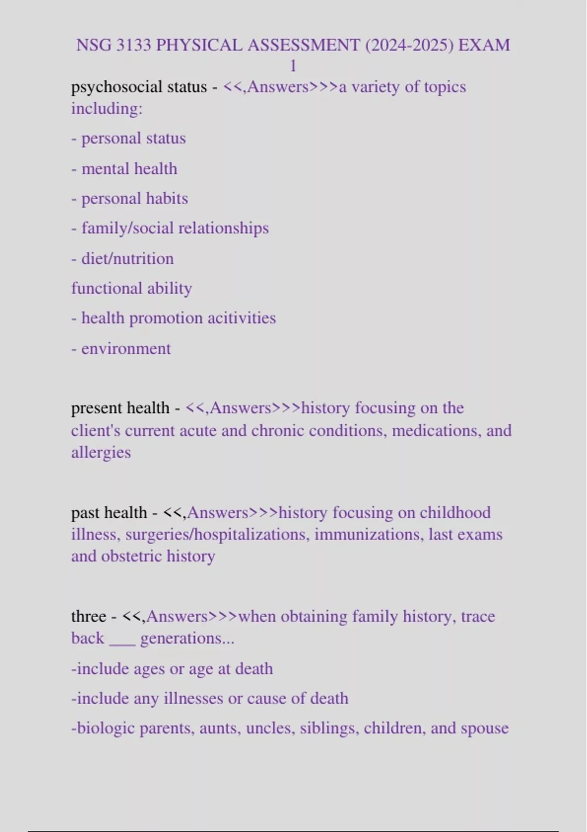 NSG 3133 PHYSICAL ASSESSMENT () EXAM