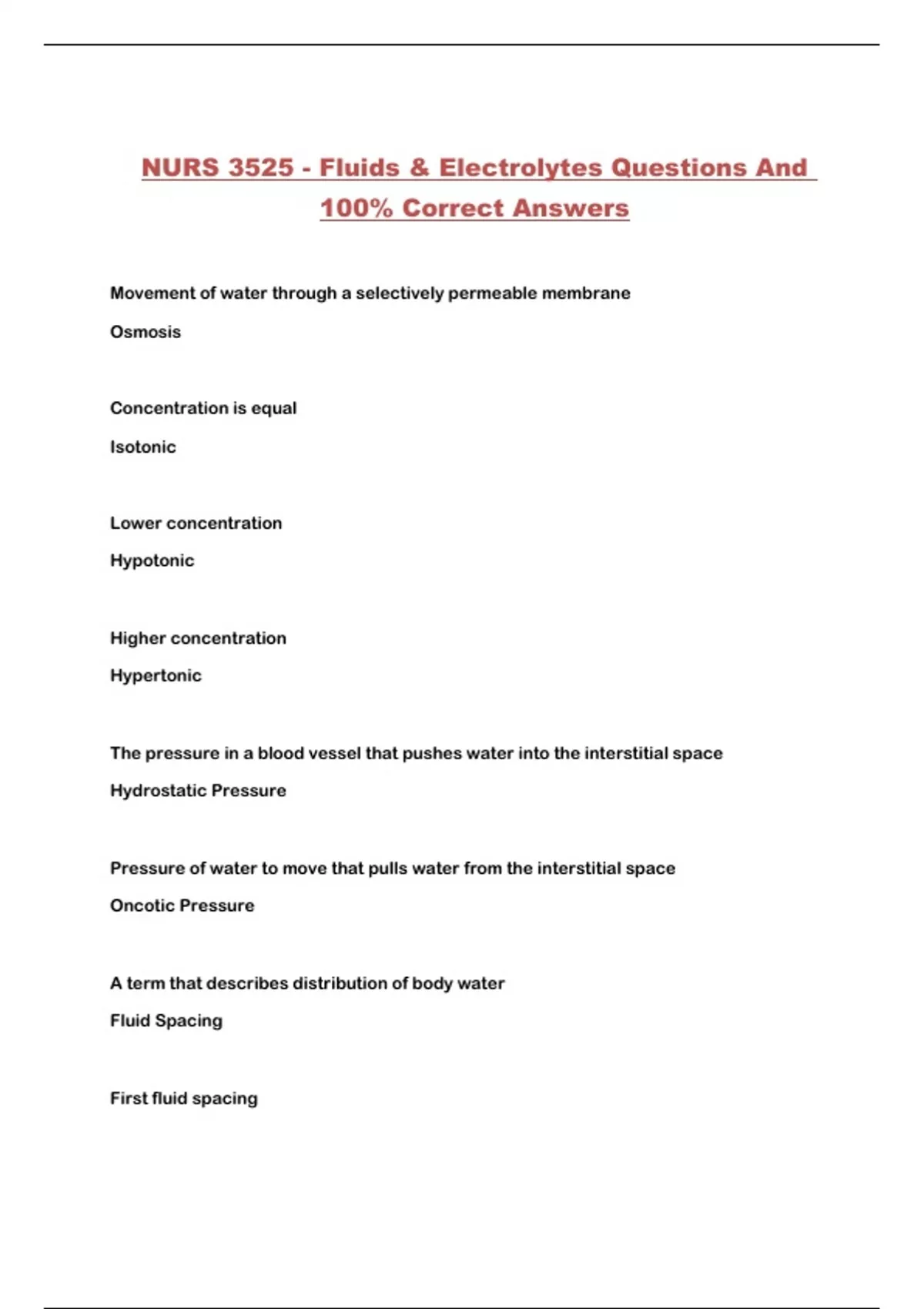 NURS 3525 - Fluids & Electrolytes Questions And
