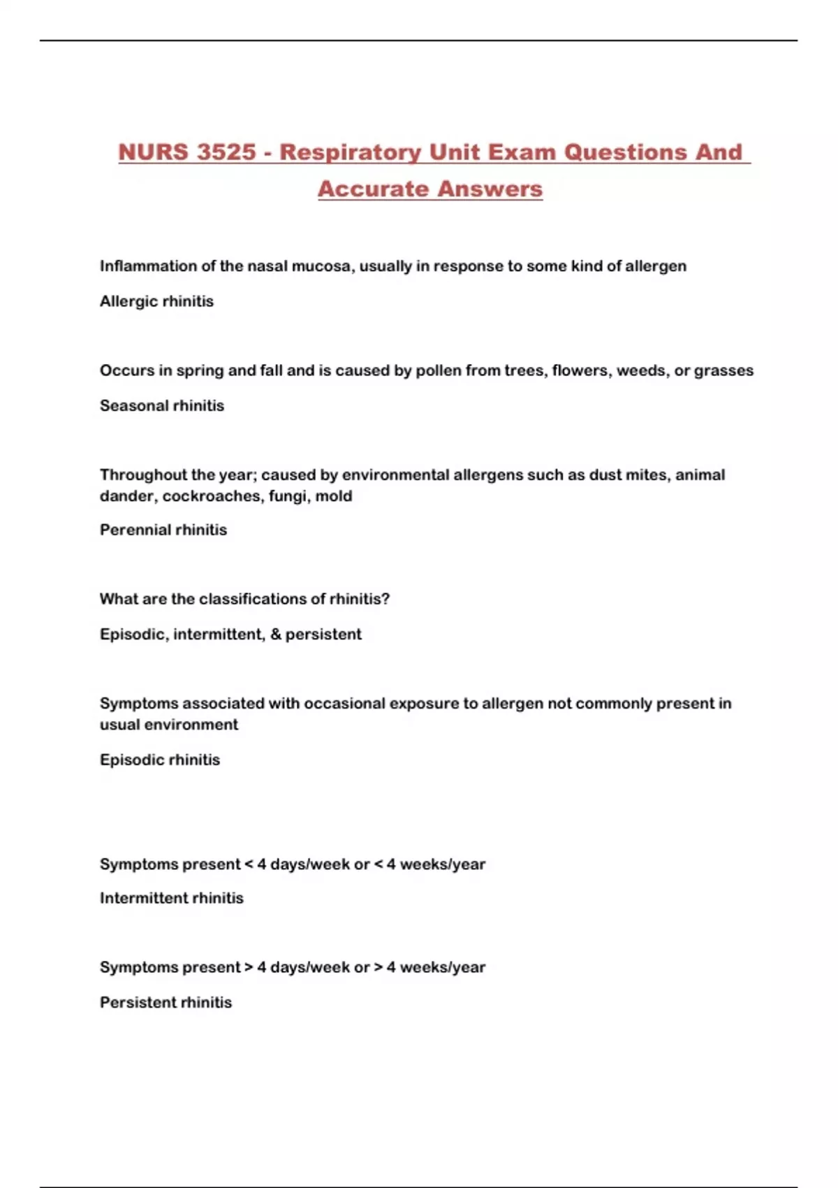 NURS 3525 - Respiratory Unit Exam Questions And Accurate Answers...