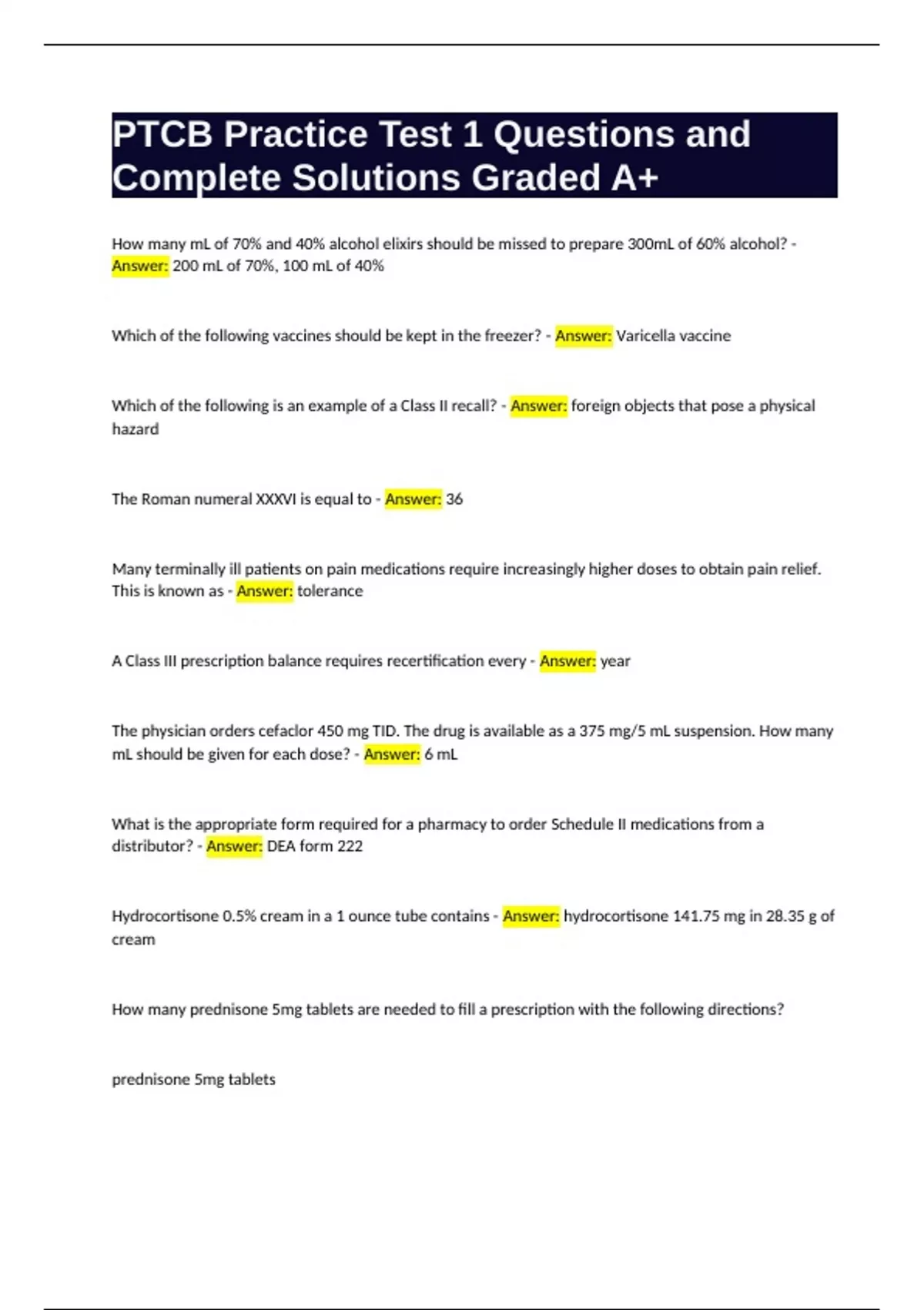 PTCB Practice Test 1 Questions and Complete Solutions Graded A+