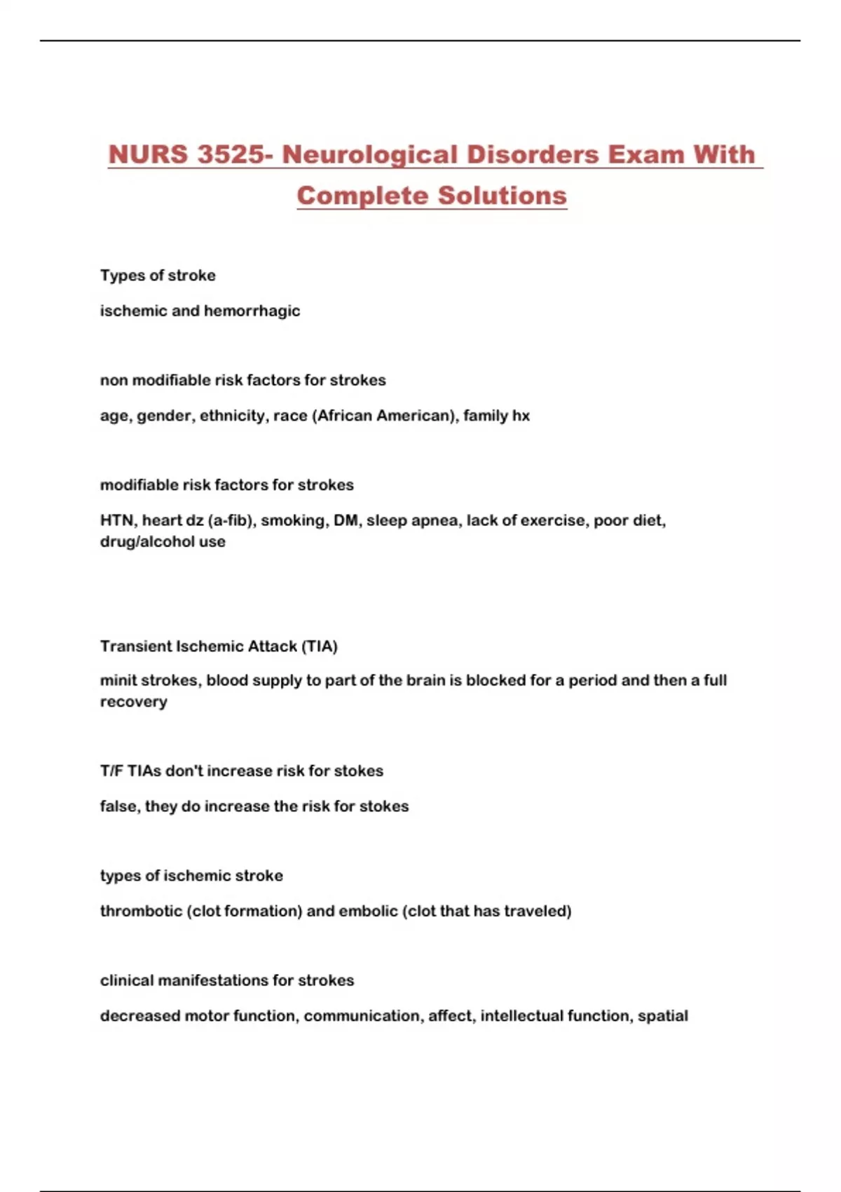 NURS 3525- Neurological Disorders Exam With Complete Solutions...