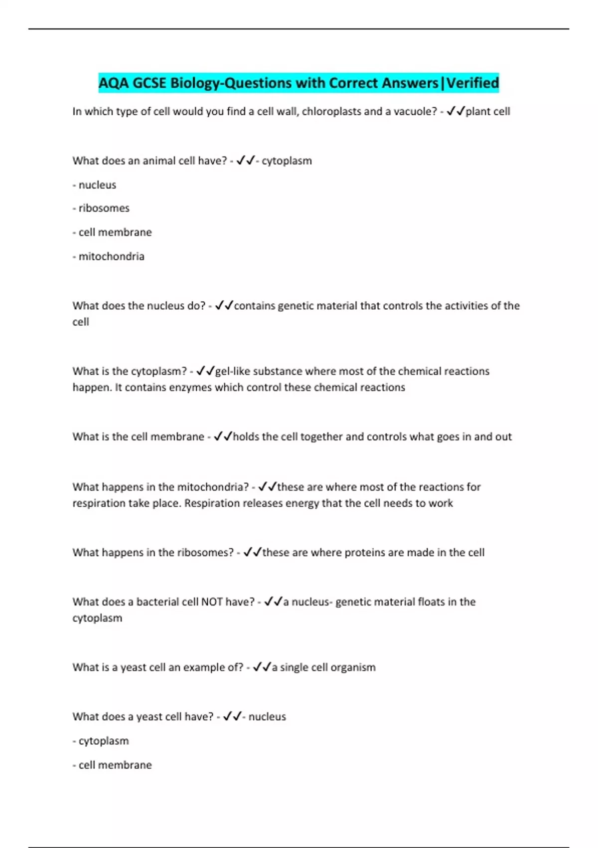 What is a yeast cell an example of? - ✔✔a single cell organism