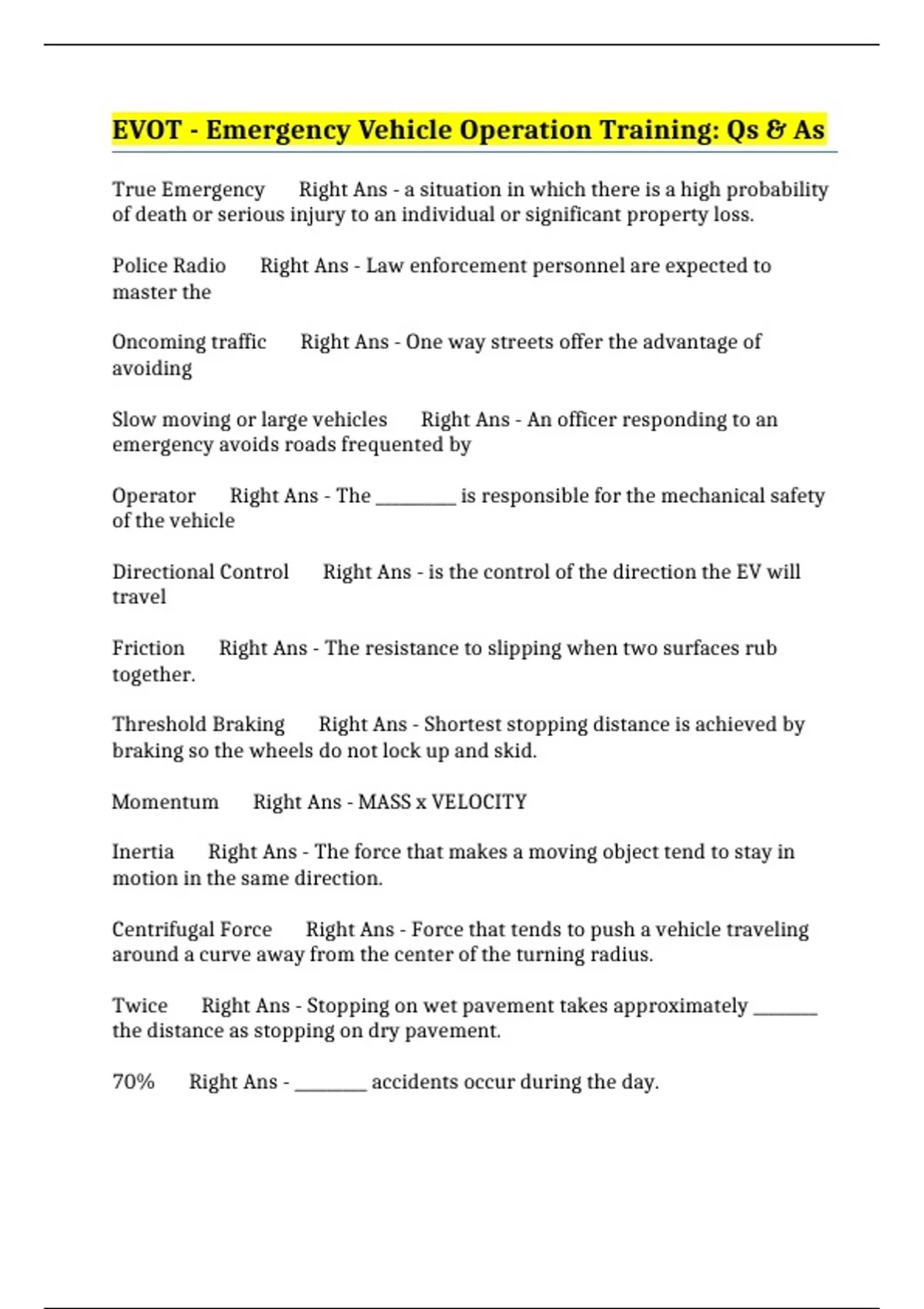 Threshold Braking Right Ans - Shortest stopping distance is achieved by