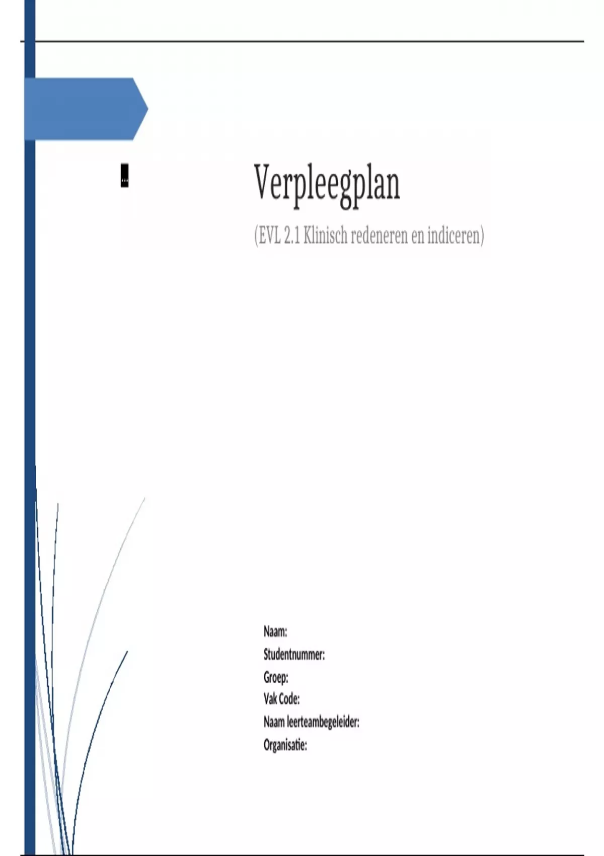 D.m.v. de uitwerking van dit verpleegplan wil ik kunnen laten zien dat ik de competenties als verpleegkundige beheers. Denk hierbij aan het stellen van verpleegkundige diagnoses en het indiceren, organiseren, verlenen (uitvoeren) en coördineren van verpleegkundige zorg. Dit op basis van klinisch redeneren volgens Evidence Based Practice (EBP).