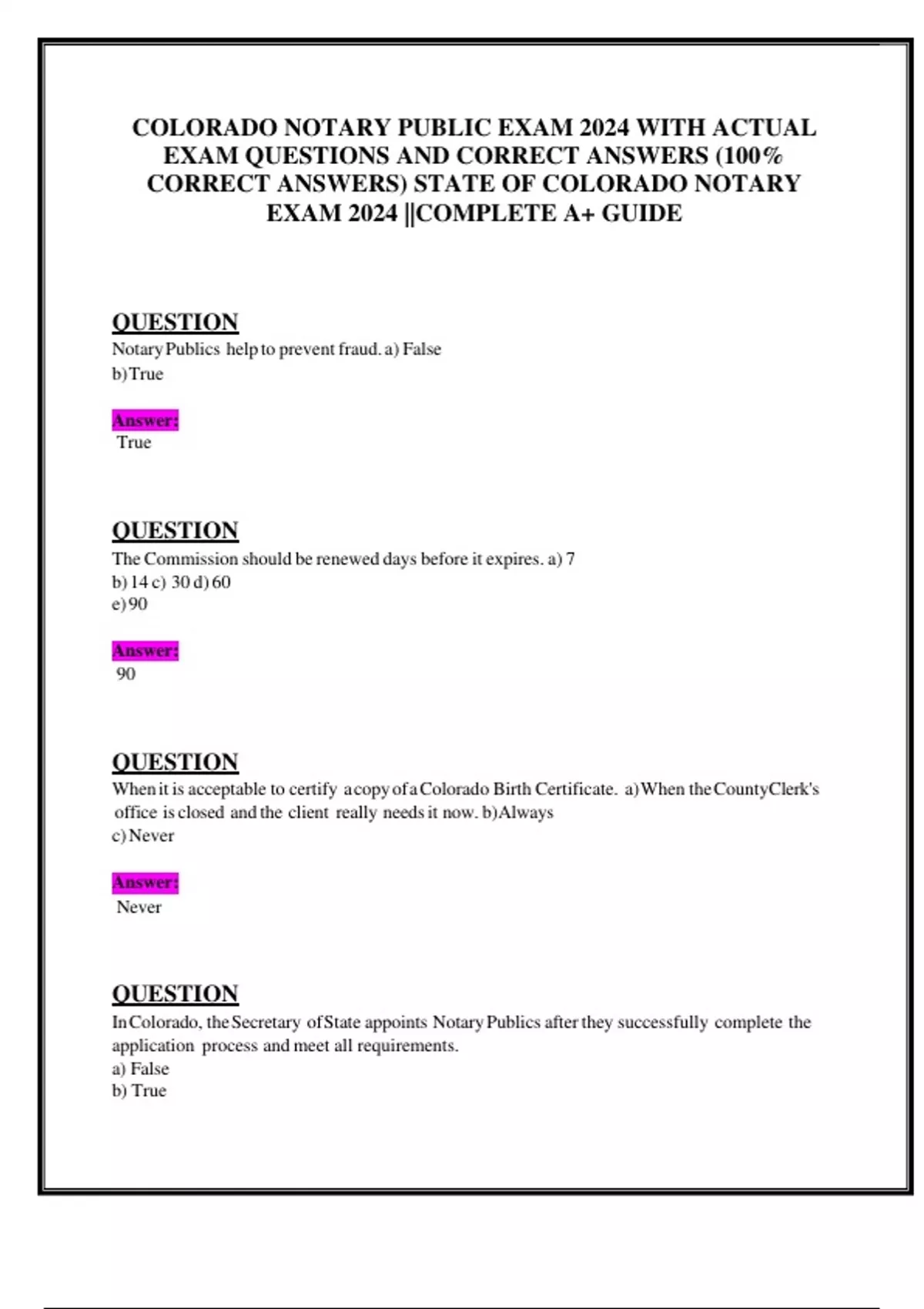 CORRECT ANSWERS) STATE OF COLORADO NOTARY