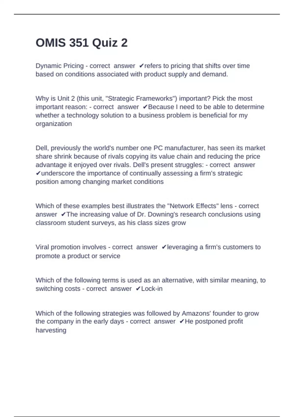 Dynamic Pricing - correct answer ✔refers to pricing that shifts over time