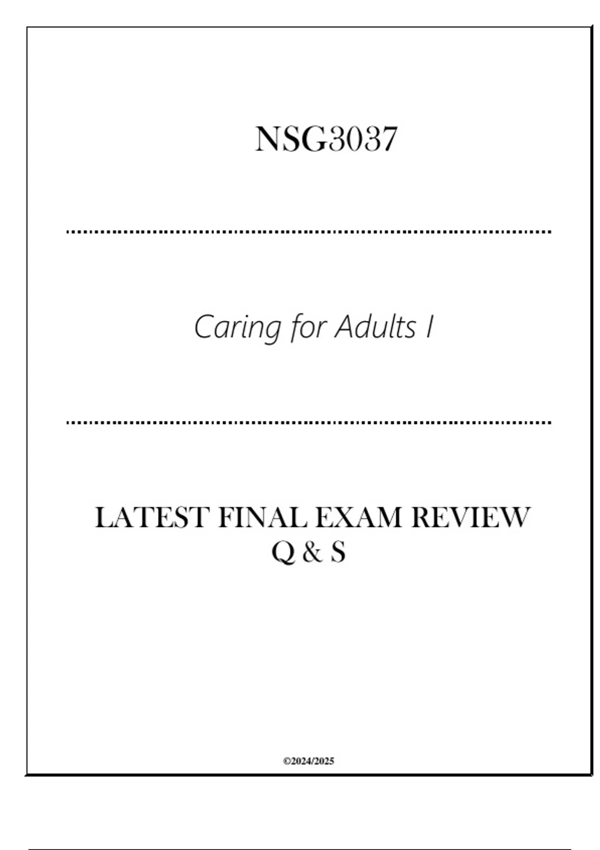 Caring for Adults I