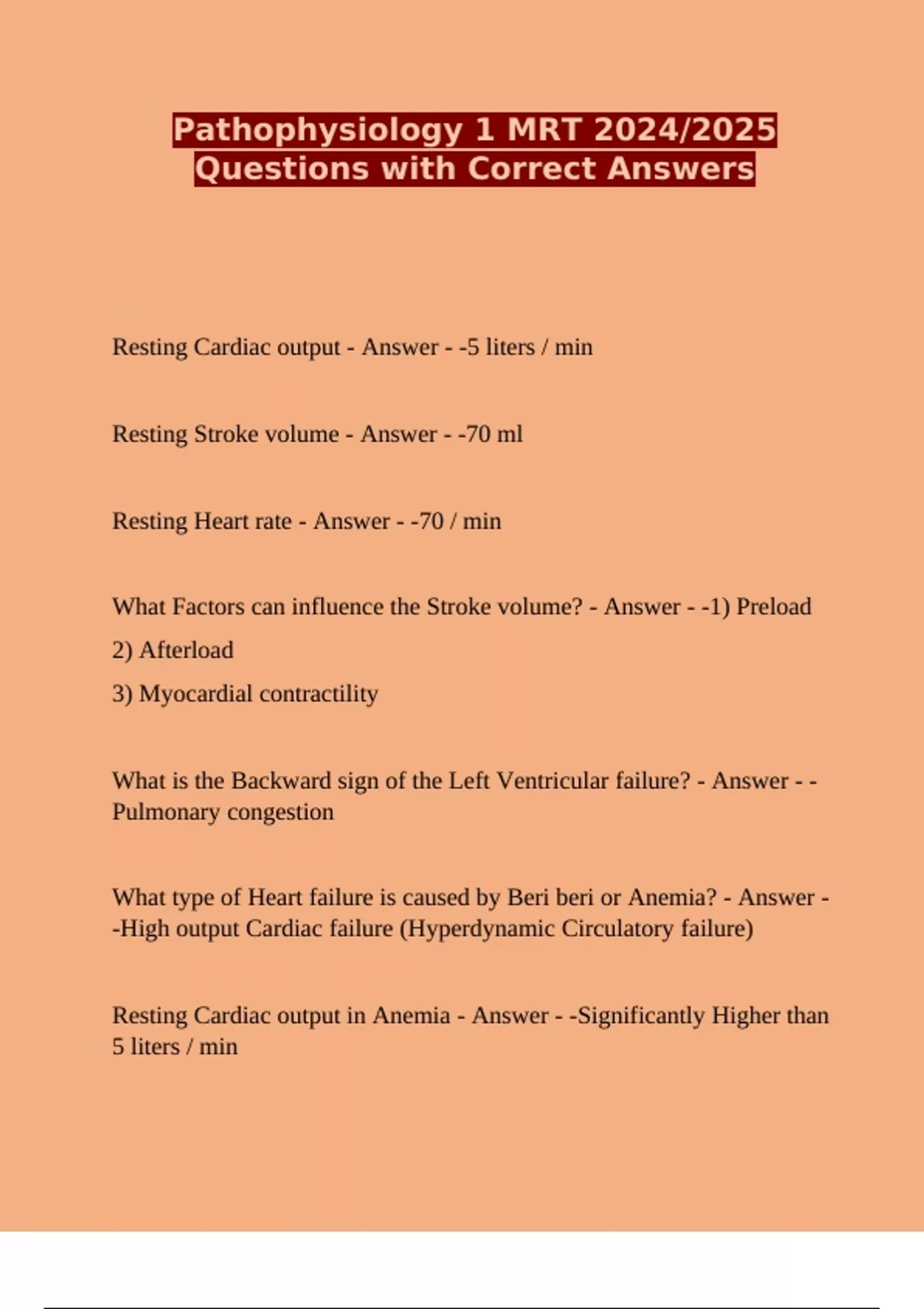 Resting Cardiac output in Anemia - Answer - -Significantly Higher than