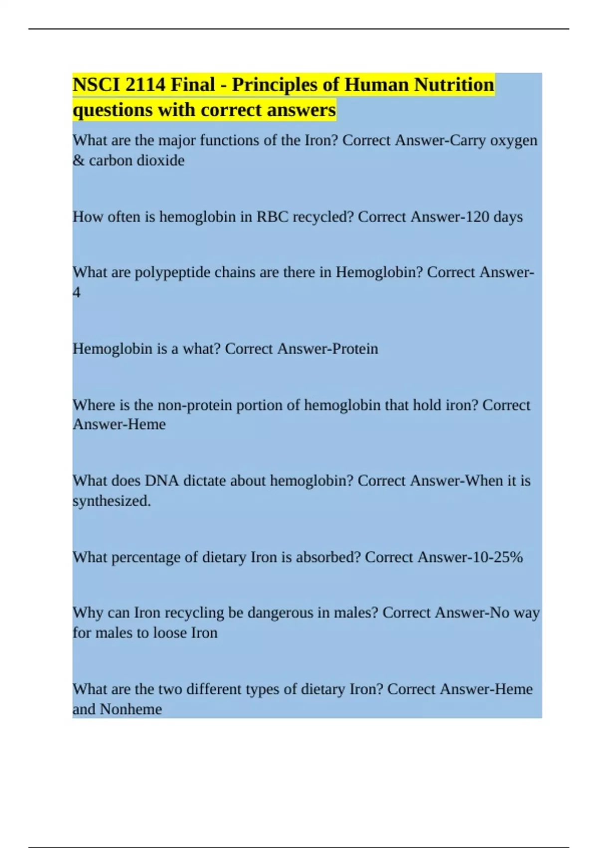 Hemoglobin is a what? Correct Answer-Protein