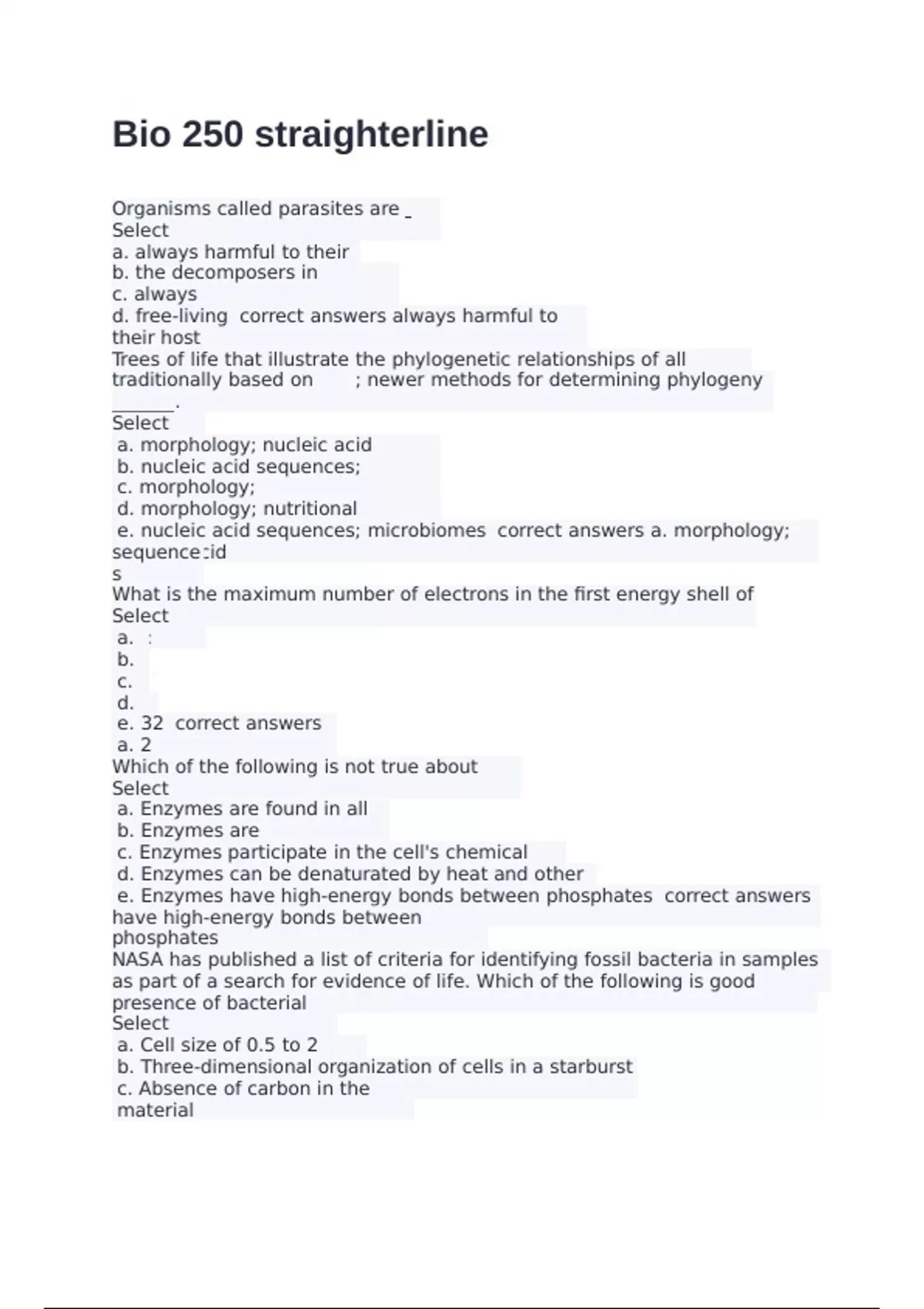 e. biotechnology correct answers a.