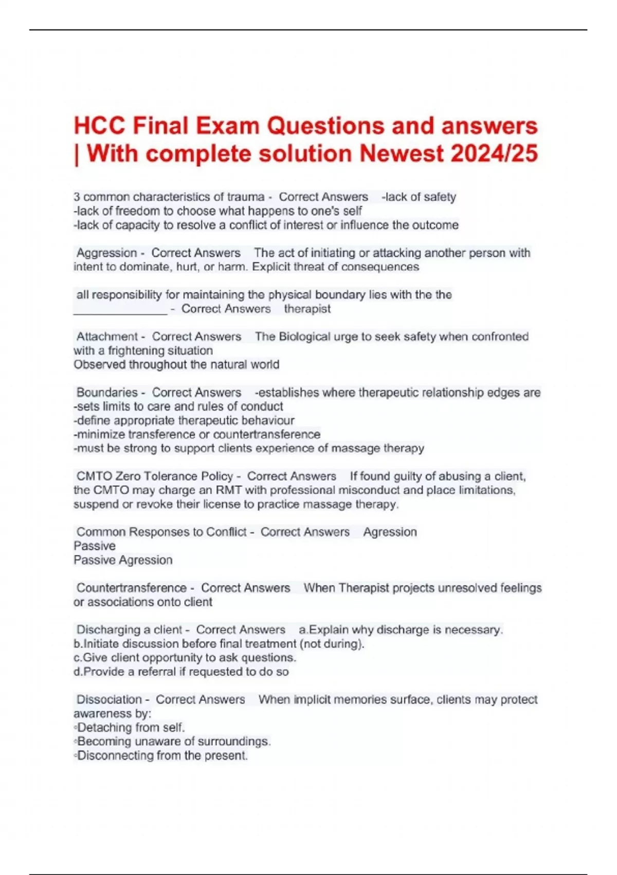 HCC Final Exam Questions and answers | With complete solution Newest 2024/25