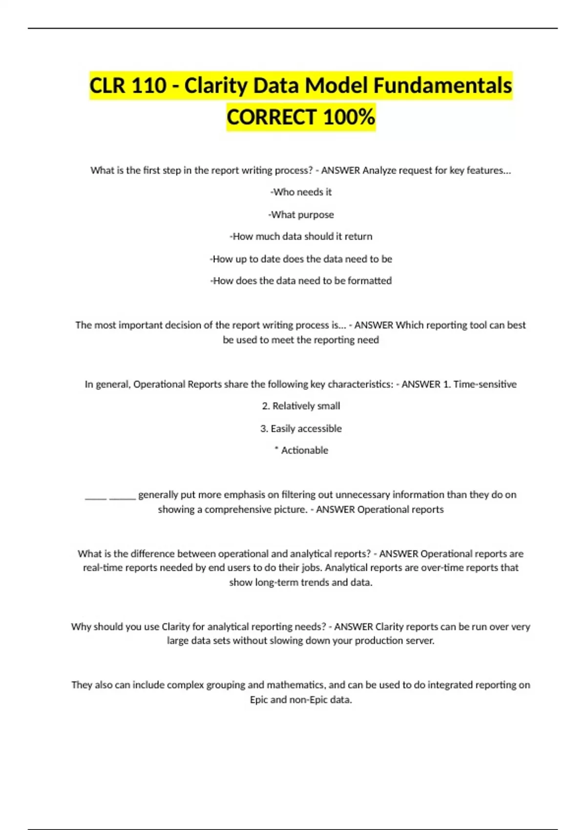 In general, Operational Reports share the following key characteristics: - ANSWER 1. Time-sensitive