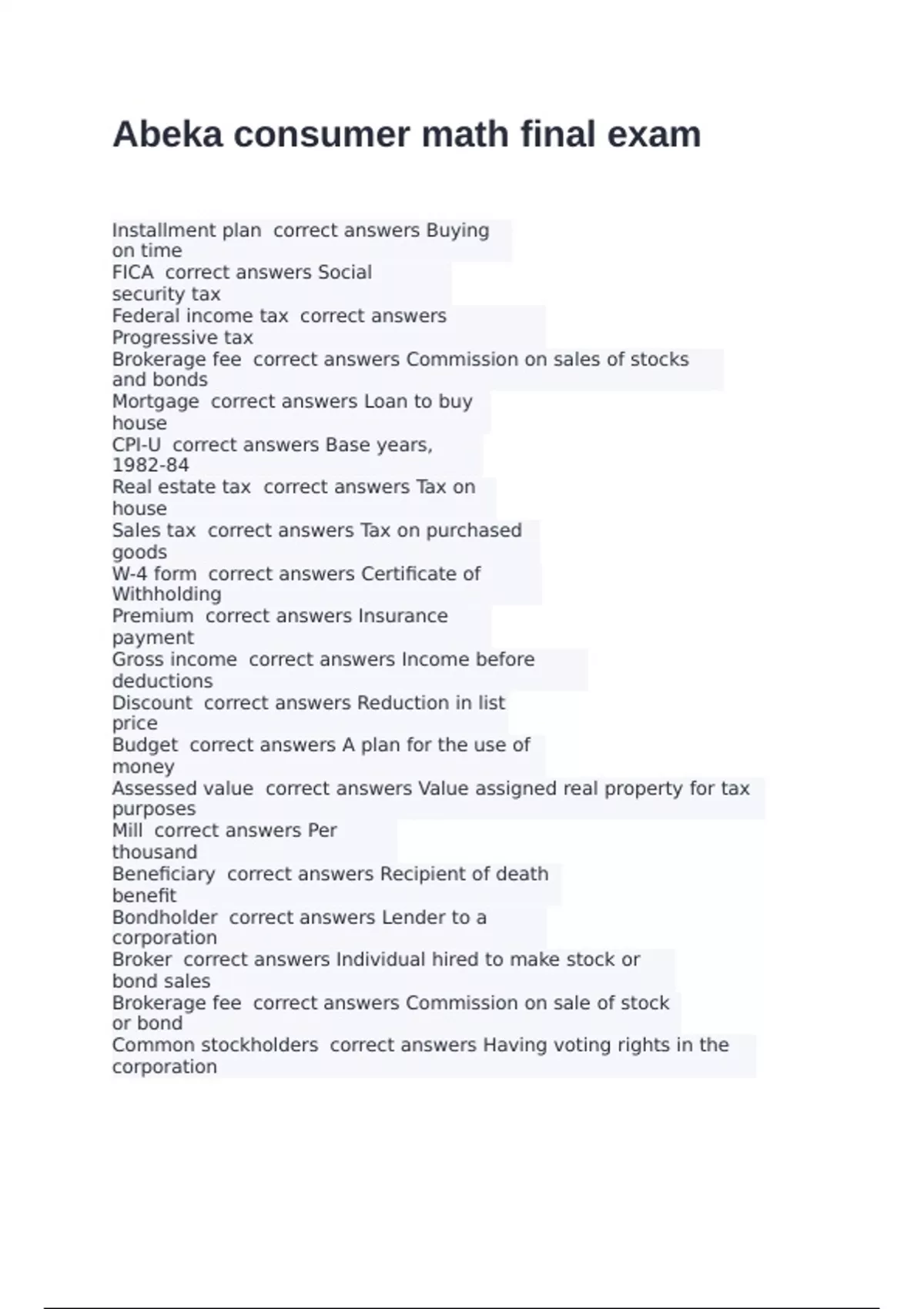 Sales tax correct answers Tax on purchased