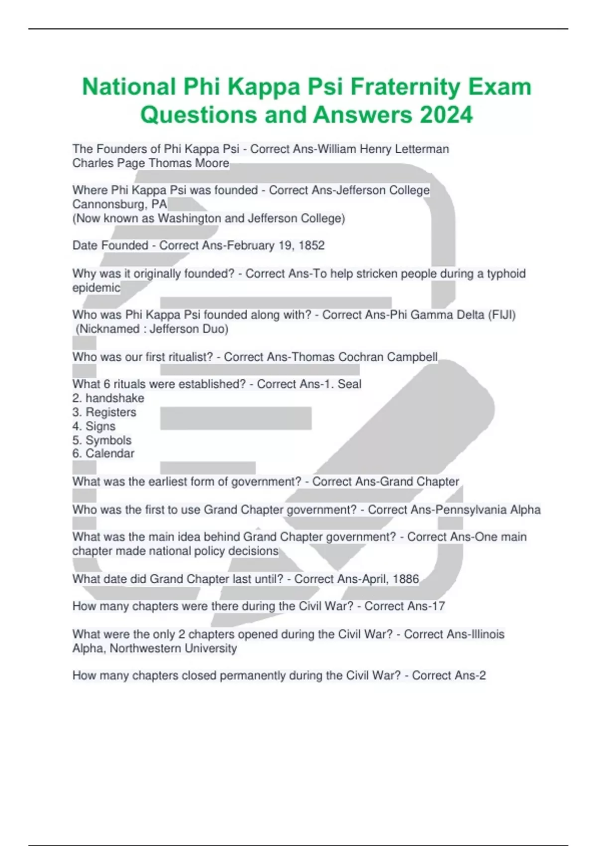 Who was Phi Kappa Psi founded along with? - Correct Ans-Phi Gamma Delta (FIJI)