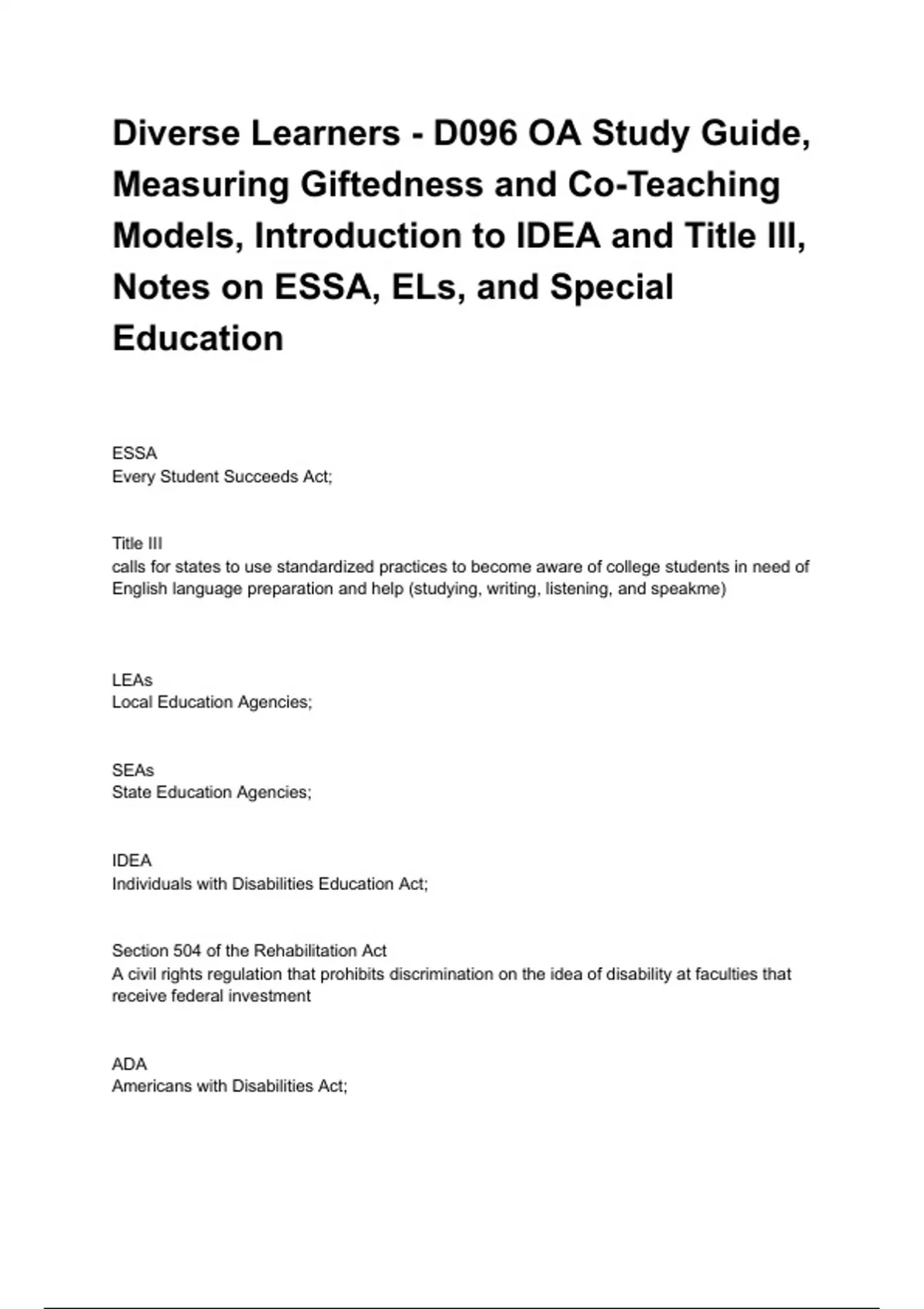 Notes on ESSA, ELs, and Special