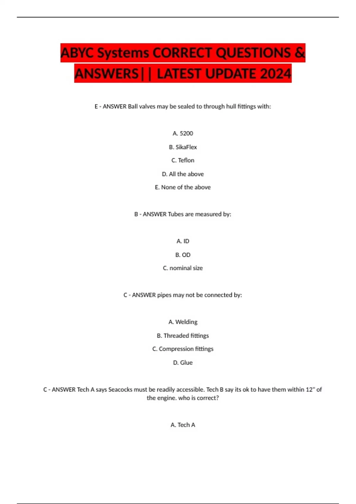 B - ANSWER According to ABYC, a biologically contaminated potable- water system should be disinfected