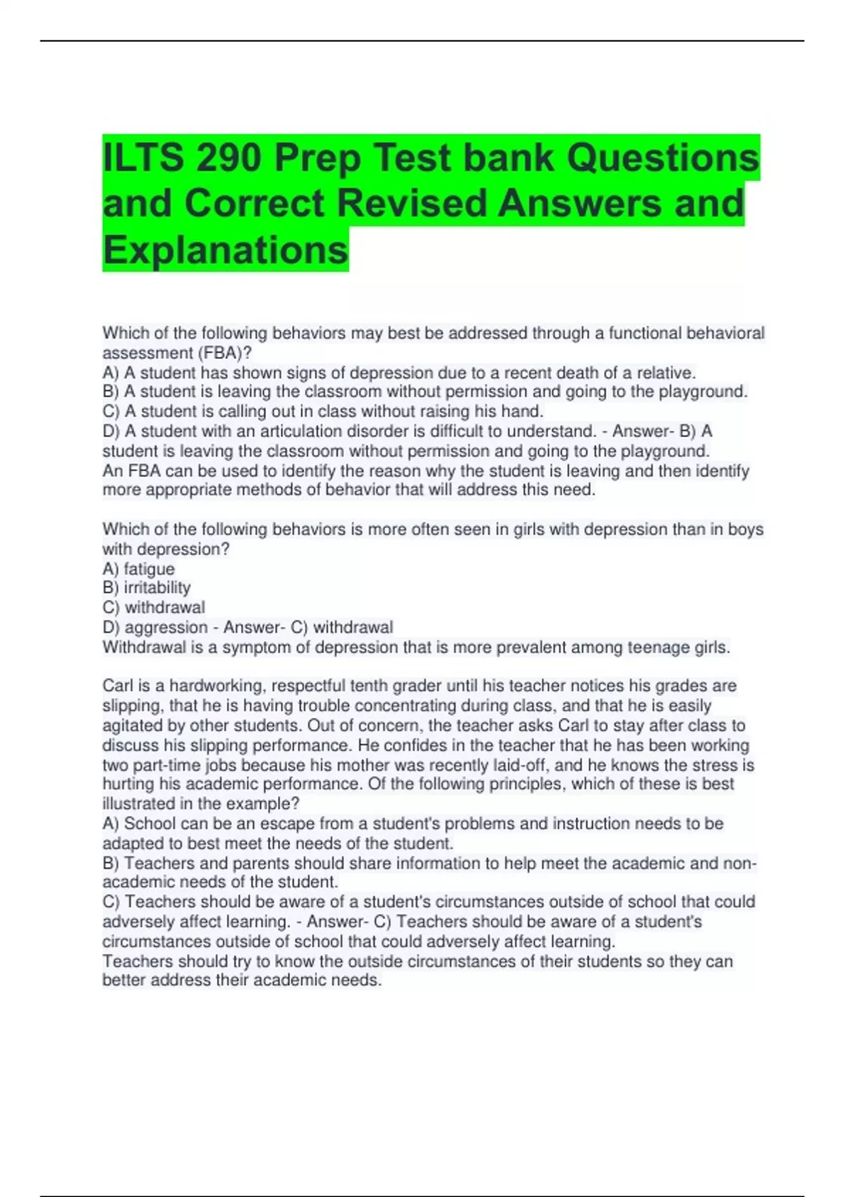 adversely affect learning. - Answer- C) Teachers should be aware of a student's