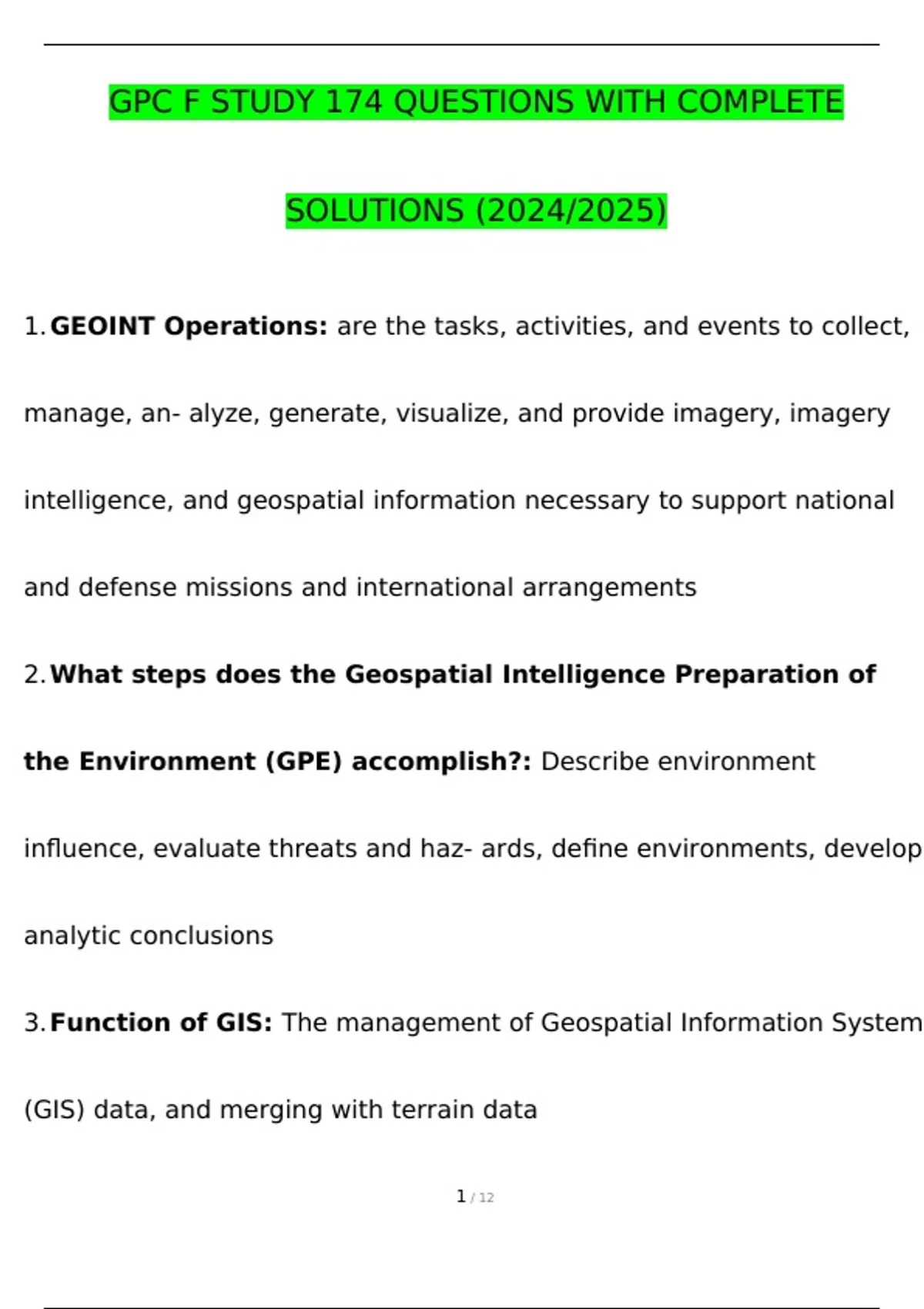 GPC F STUDY 174 QUESTIONS WITH COMPLETE