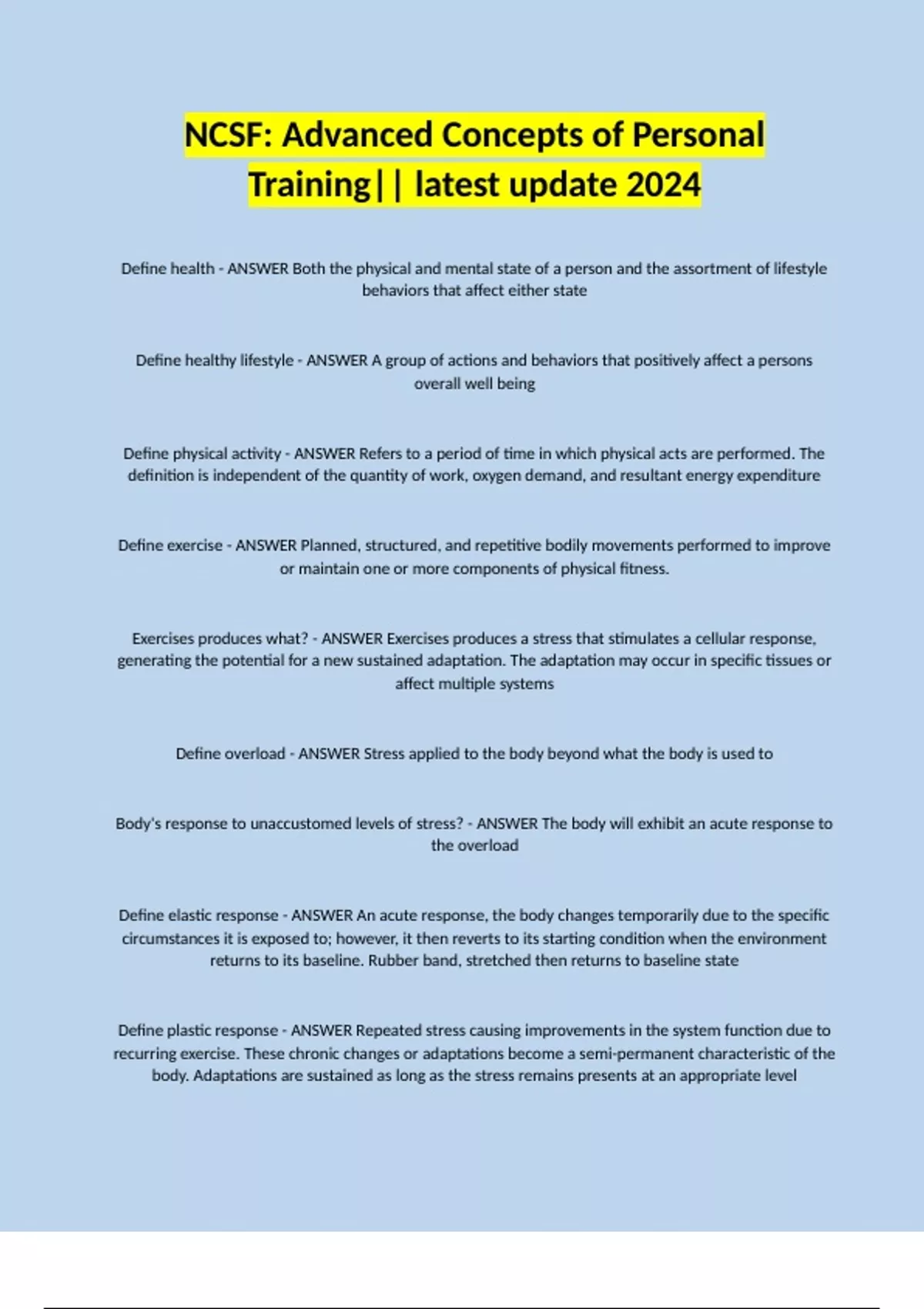 Exercises produces what? - ANSWER Exercises produces a stress that stimulates a cellular response,