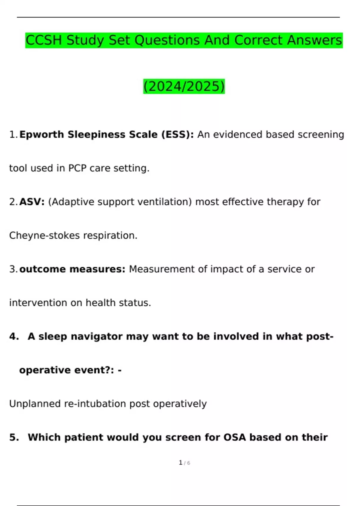 1. Epworth Sleepiness Scale (ESS): An evidenced based screening