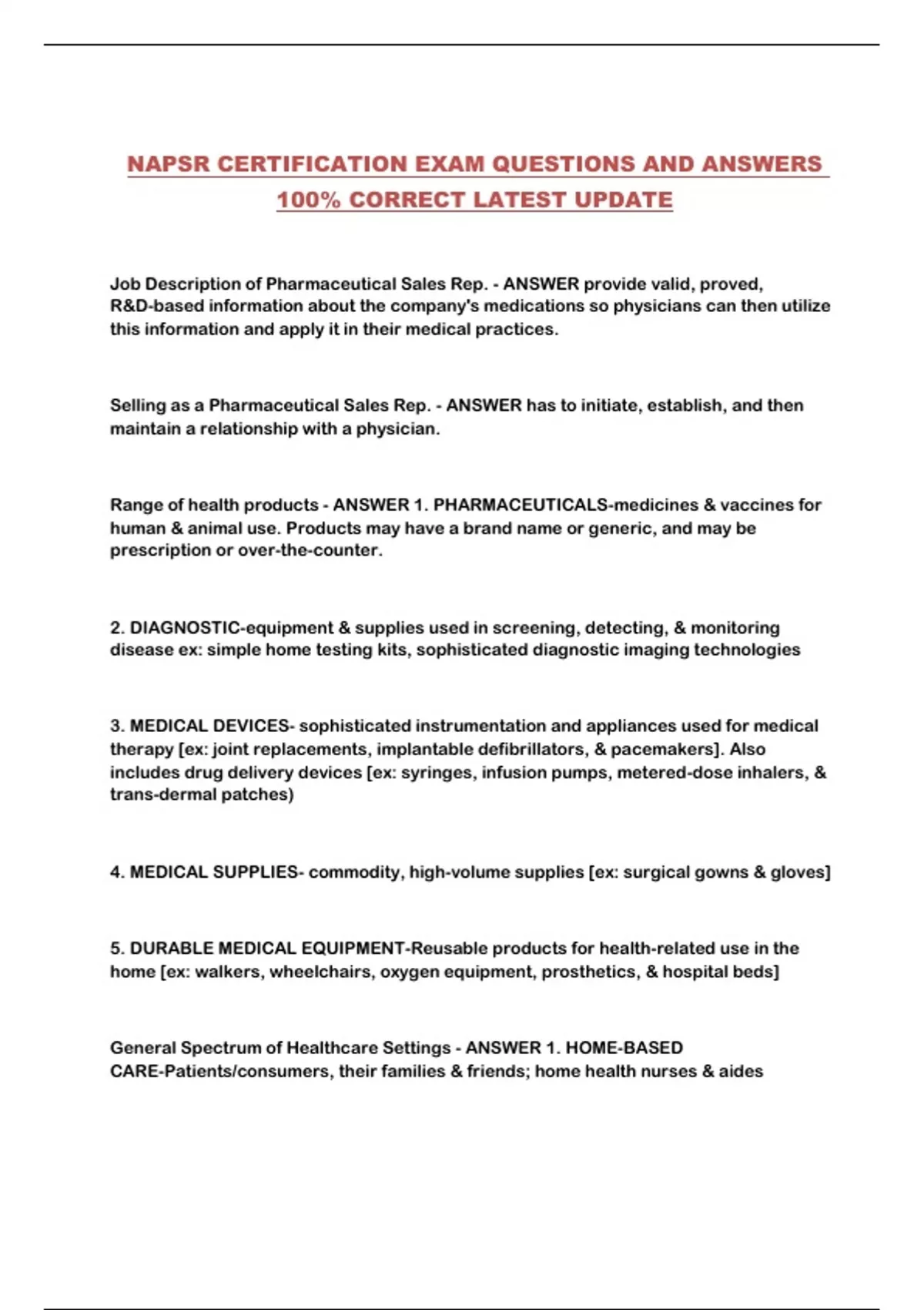 NAPSR CERTIFICATION EXAM QUESTIONS AND ANSWERS