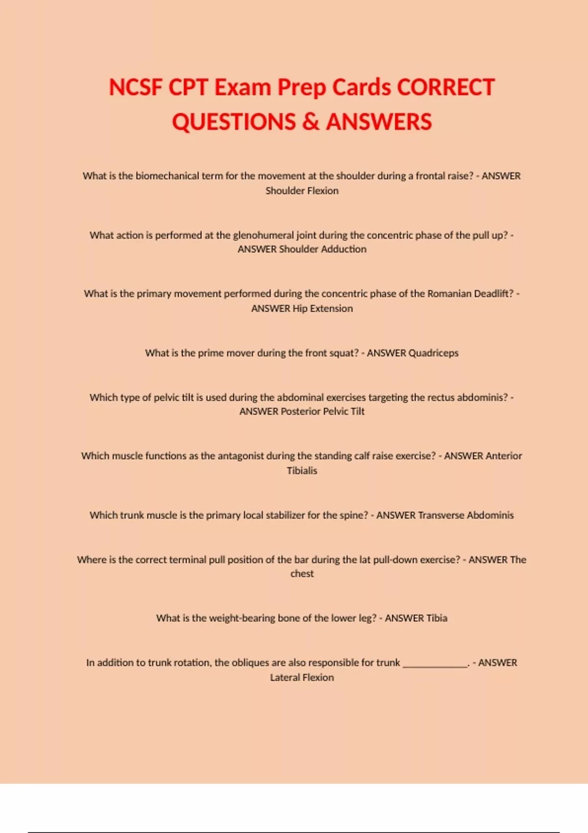 NCSF CPT Exam Prep Cards CORRECT QUESTIONS & ANSWERS